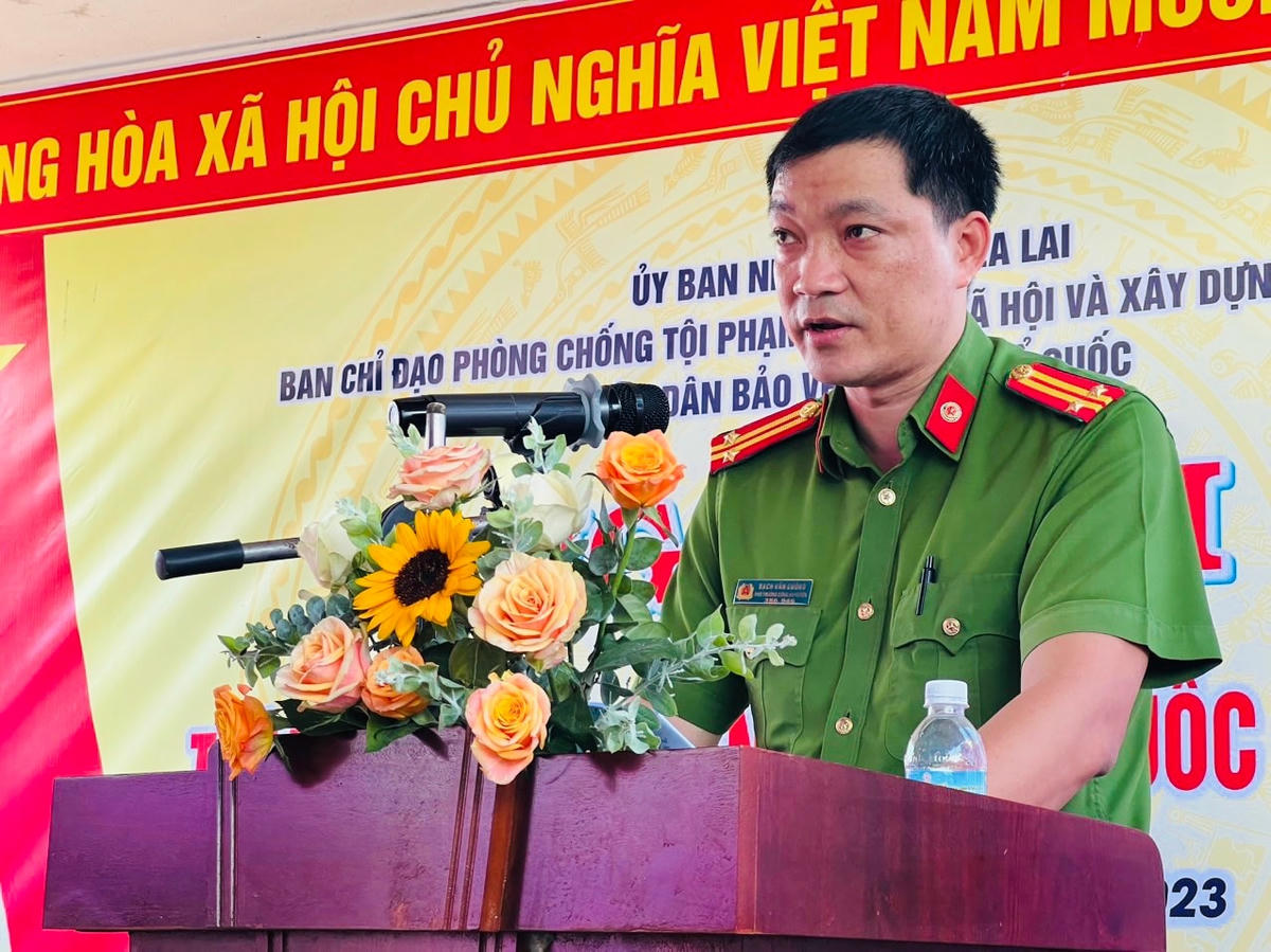 Trung tá Bạch Văn Cường đề nghị lãnh đạo cấp ủy, chính quyền, Mặt trận Tổ quốc, các cơ quan, ban, ngành, đoàn thể xã Ea Lai nghiêm túc quán triệt và nhận thức sâu sắc về vị trí, vai trò, tầm quan trọng của phong trào “Toàn dân bảo vệ ANTQ”.