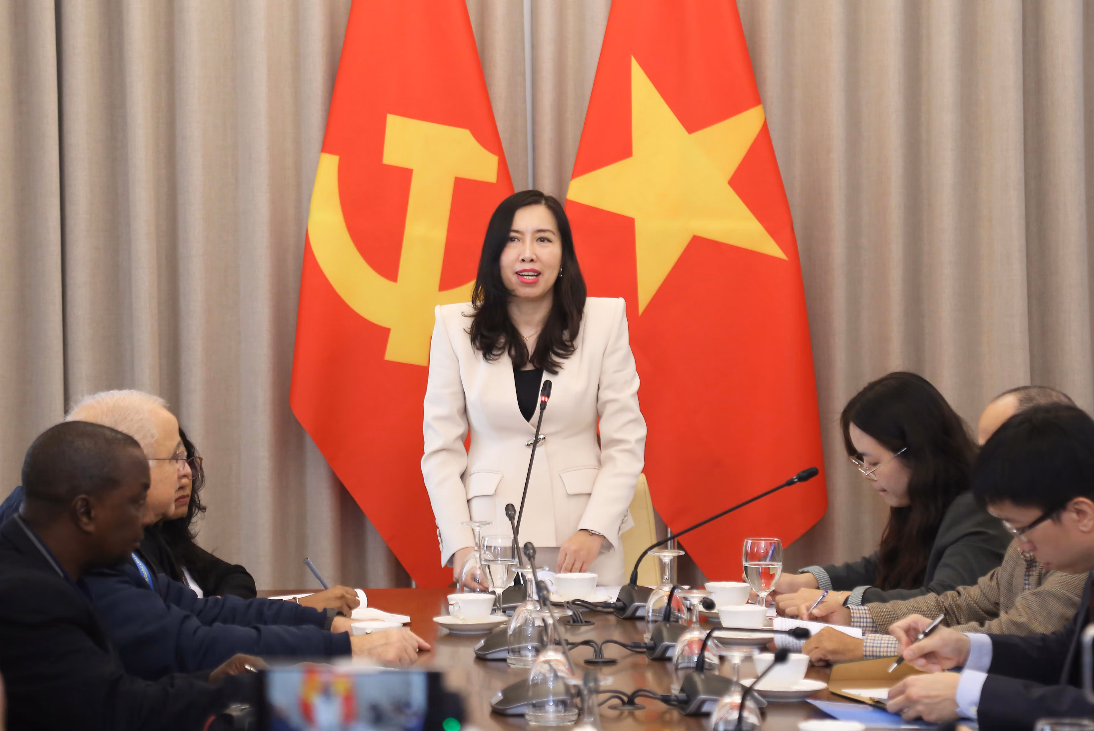 Thay mặt lãnh đạo Bộ Ngoại giao cũng như với tư cách là thành viên Tiểu ban Tuyên truyền phục vụ Đại hội Đảng, Thứ trưởng Lê Thị Thu Hằng nhiệt liệt chào mừng và cảm ơn đoàn đã đến Việt Nam trong dịp này.