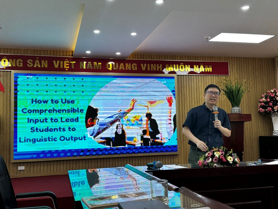 Tại buổi tập huấn, ông Nguyễn Tuấn Anh, Phó trưởng khoa Sư phạm Tiếng Anh, Trường Đại học Ngoại ngữ, Đại học Quốc gia Hà Nội đã chia sẻ các phương pháp giảng dạy hiệu quả cũng như cách thiết kế bài giảng sinh động và hấp dẫn. Quá trình dạy học của mỗi giáo viên chính là hành trình truyền cảm hứng cho học sinh, nhằm tạo ra “sản phẩm” là lứa học sinh ko sợ bộ môn tiếng Anh và không bỏ lại học sinh nào phía sau. Thiết kế của bộ sách Global Success cho học sinh là sự tích hợp các kỹ năng Đọc – Nói – Nghe - Viết. Theo ông Tuấn Anh, việc dạy lồng ghép các kỹ năng là vô cùng thiết yếu trong việc phát triển năng lực của người học. Những thành viên tham gia buổi tập huấn đã cùng nhau tích cực thảo luận, chia sẻ các phương pháp dạy những nội dung từ vựng, ngữ pháp, ngữ âm…