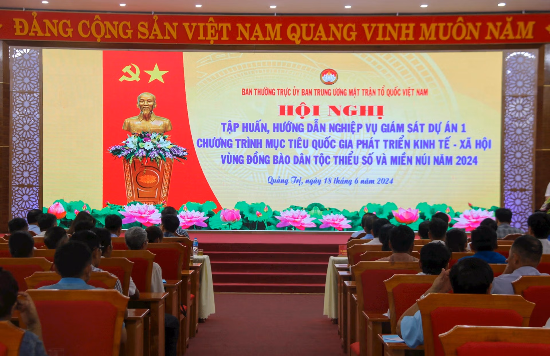 Sáng 18/6, tại tỉnh Quảng Trị diễn ra Hội nghị tập huấn, hướng dẫn nghiệp vụ giám sát, phản biện Dự án 1 Chương trình Mục tiêu quốc gia phát triển kinh tế - xã hội vùng đồng bào dân tộc thiểu số và miền núi (gọi tắt là Chương trình MTQG 1719).