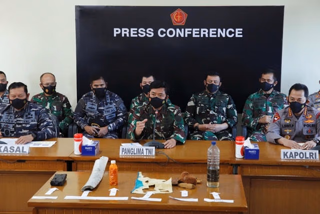 Theo Reuters, 6 mảnh vỡ được cho là của tàu ngầm Nanggala đã được công bố tại cuộc họp báo ngày 24/4. Các vật dụng này được tìm thấy gần nơi tàu ngầm bắt đầu lặn xuống trước khi mất tích, bao gồm một chai dầu mỡ bôi trơn, một phần của ống phóng ngư lôi, một phần của ống kim loại, thảm cầu nguyện và nhiên liệu.