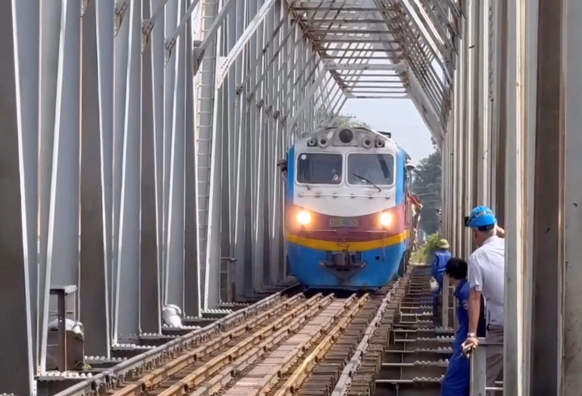 Theo đó, đoàn tàu hàng chạy với tốc độ 5 km/h qua cầu Long Biên và cầu Đuống an toàn từ Yên Viên về ga Long Biên. Sau đó tàu nâng tốc độ chạy ngược lại về Yên Viên.
