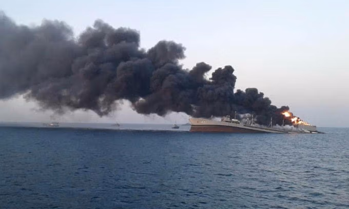Tàu huấn luyện của hải quân Iran bốc cháy