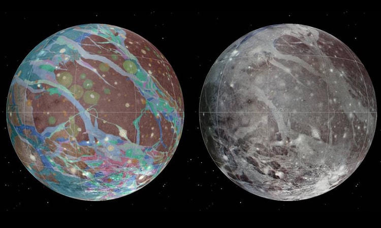 Ganymede được đặt tên theo một người hầu rượu cho các vị thần Hy Lạp cổ đại. Không chỉ là vệ tinh tự nhiên lớn nhất hệ Mặt Trời, đây còn là mặt trăng duy nhất có từ trường. Điều này khiến cực quang xuất hiện xung quanh cực bắc và cực nam.