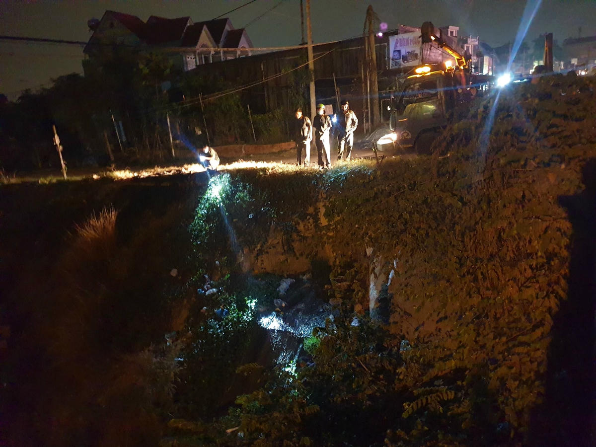 Ghi nhận tại hiện trường, 1 xe máy bị rơi xuống kênh, chiếc ô tô hư hỏng nặng bể cả 2 bánh trước và dừng cách hiện trường khoảng 200 m.