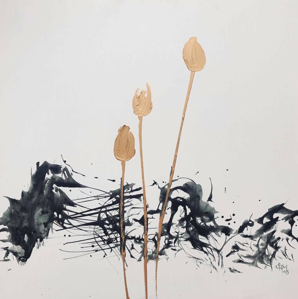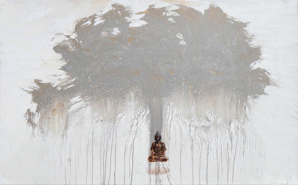 Tôi đã được xem một số bức tranh Thăng chuẩn bị cho triển lãm “Trong cái không có gì không” thì thấy trong miền mênh mang của Thăng có Phật. Thăng kể, em đã tu tập. Hơn 4 năm qua khá nhiều biến cố đến với Thăng, cha mẹ vào tuổi lão, em gái ốm và các con bước vào cuộc chiến tuổi dậy thì… Thăng kể, em phải khoanh vùng từng việc, giải quyết từng việc một, phải đặt vào bàn cân từng việc, lần từng đầu mối để gỡ rối.