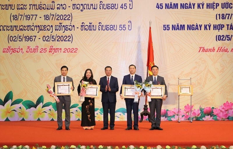 Nhân dịp này, thừa ủy quyền Chủ tịch nước CHDCND Lào, ông Văn Xay Pheng Xum Ma, Bí thư Tỉnh ủy, Tỉnh trưởng tỉnh Hủa Phăn đã trao Huân chương Phát triển hạng Nhất của Chủ tịch nước CHDCND Lào cho tỉnh Thanh Hóa vì đã có những đóng góp trong công cuộc xây dựng và phát triển đất nước Lào anh em và những thành tích trong việc vun đắp mối quan hệ hữu nghị vĩ đại, tình đoàn kết đặc biệt và hợp tác toàn diện giữa hai nước Việt Nam - Lào; trao Huân chương Lao động hạng II của Chủ tịch nước CHDCND Lào cho 2 cá nhân nguyên lãnh đạo tỉnh Thanh Hóa; trao Huân chương Lao động hạng III của Chủ tịch nước CHDCND Lào cho 4 cá nhân và 7 tập thể và trao Bằng khen của Thủ tướng Chính phủ nước CHDCND Lào cho Công ty Xây dựng Trường Sinh và Trường Đại học Kiến trúc Hà Nội.