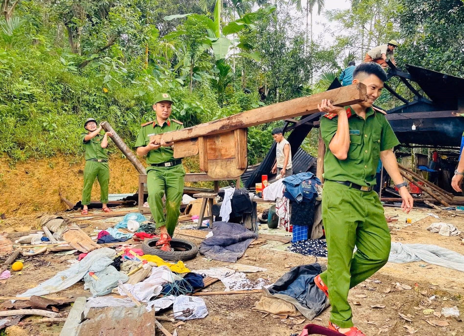Tại Quảng Ngãi, ông Phạm Xuân Quang - Chủ tịch UBND xã Măng Ri cho biết, xã đã tổ chức lễ phát động hưởng ứng “Chiến dịch Quang Trung”, huy động gần 140 cán bộ, chiến sĩ công an xã, dân quân, người dân thôn Chung Tam tham gia hỗ trợ di dời, xây dựng nhà, giúp bà con vùng sạt lở sớm ổn định cuộc sống.
