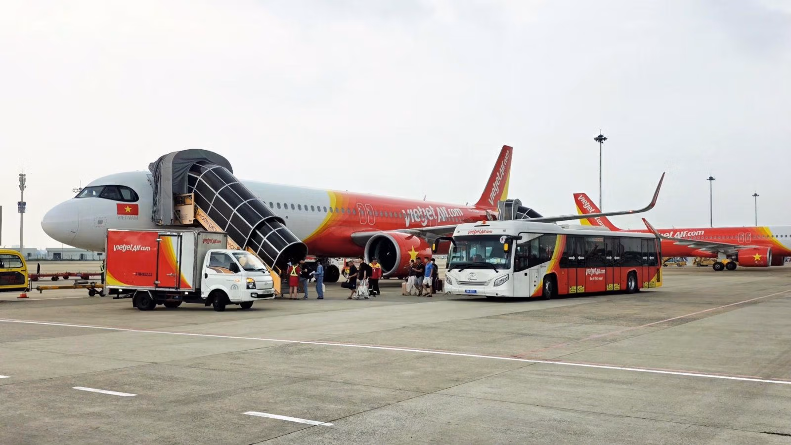 Bên cạnh việc ACV đưa vào khai thác nhà ga mới, từ cuối tháng 4 năm nay, Hãng hàng không Vietjet đã chính thức tiếp nhận chuyển giao khai thác dịch vụ mặt đất tại Tân Sơn Nhất, từ làm thủ tục, các dịch vụ vận chuyển hành khách, hành lý trong sân bay cũng như các dịch vụ khác…, là bước tiến tiếp theo trong hành trình hoàn thiện chuỗi dịch vụ hàng không của Vietjet.