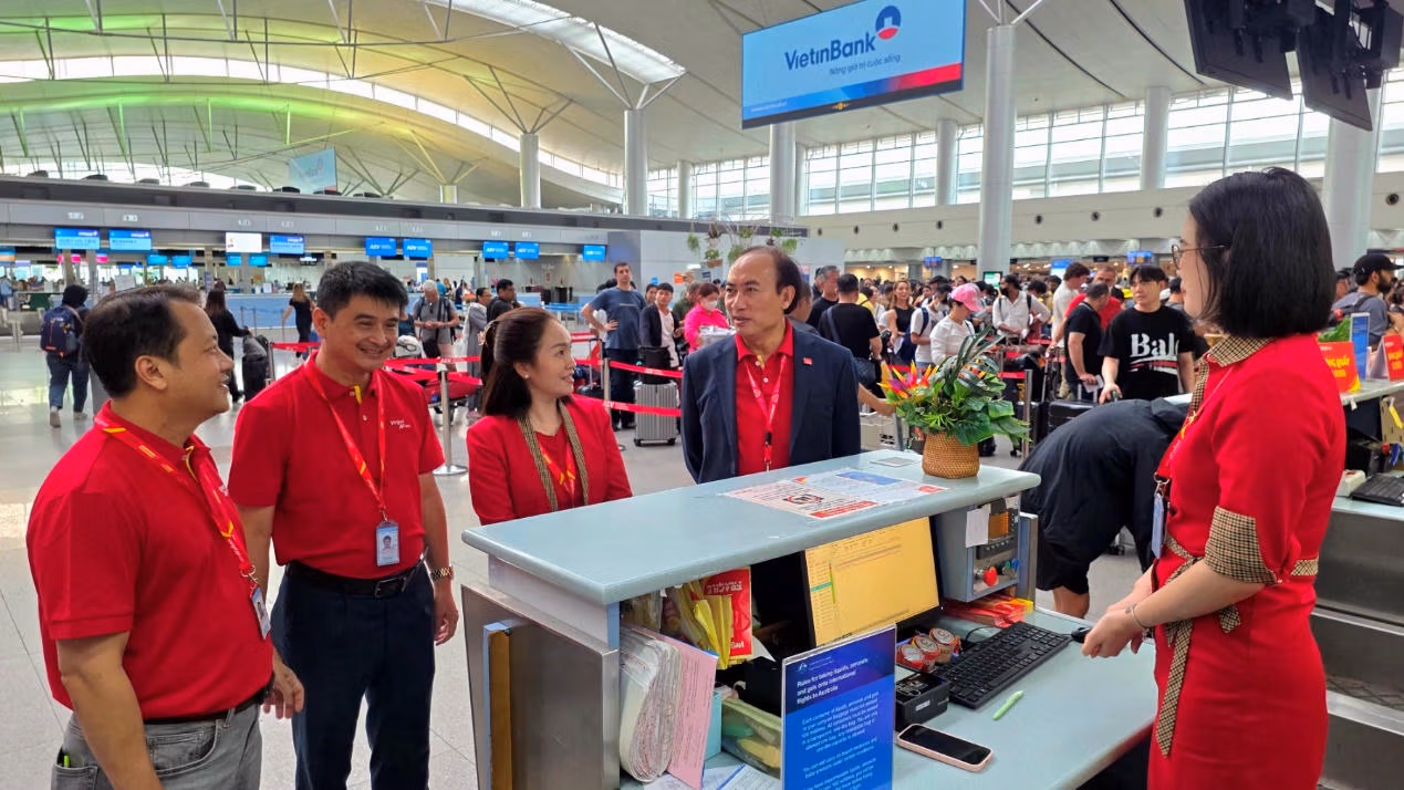 Chị Mai Thái Linh (Đồng Nai) vừa hoàn tất thủ tục cho chuyến bay từ TP HCM đi Hải Phòng, cho biết đây là lần đầu chị bay từ Tân Sơn Nhất kể từ khi Vietjet tự phục vụ dịch vụ mặt đất, và chị nhận thấy sự khác biệt quá rõ ràng.
