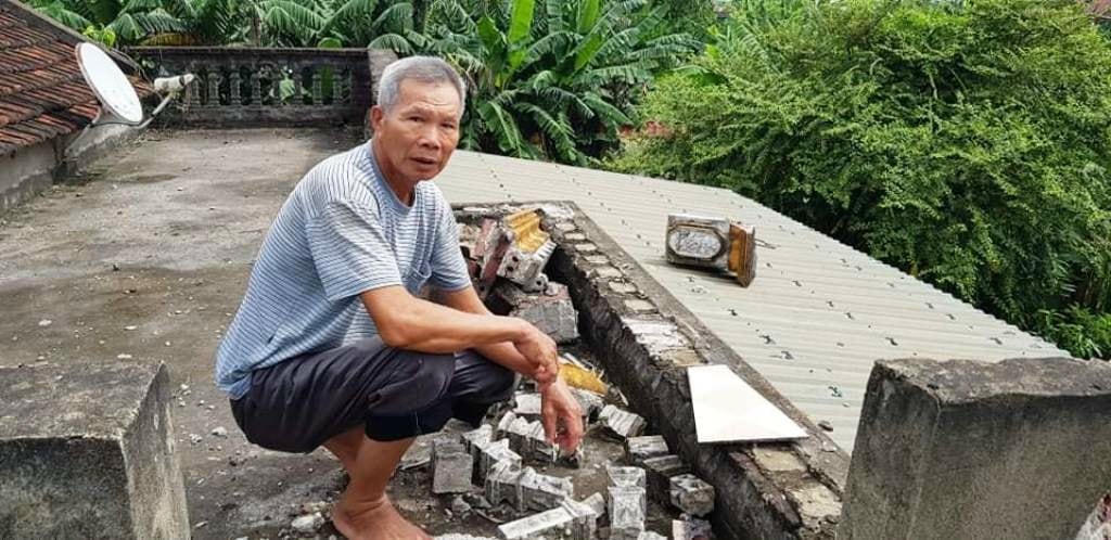 Mới đây nhất là vào đầu tháng 9, tiếng mìn nổ vang lên, một cục đá to dội thẳng xuống mái nhà làm sập lan can. Cục đá tiếp tục bật xuống làm thủng mái tôn rồi rơi xuống vườn, rất may không vào người các cháu tôi...”, ông Xa lo lắng nói.