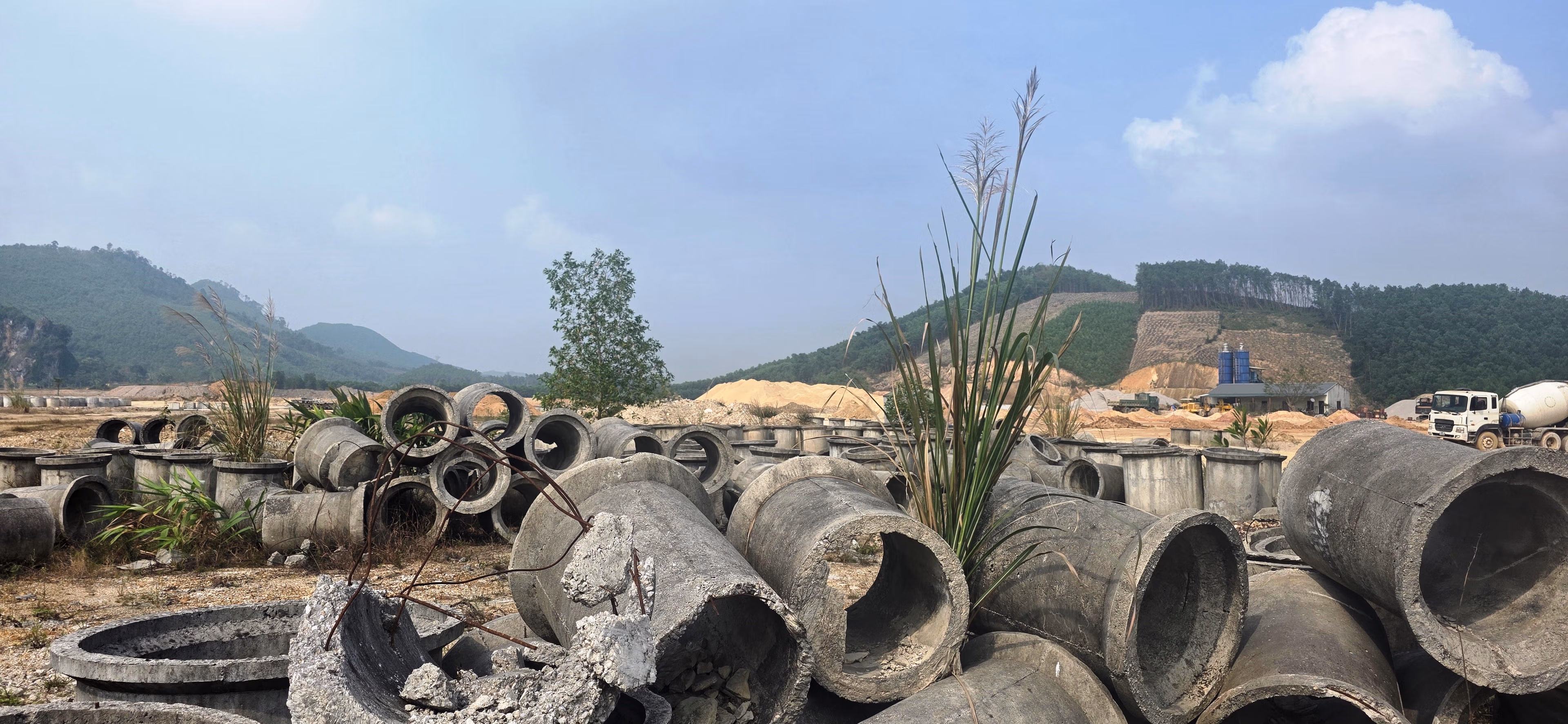 Theo ghi nhận thực tế của phóng viên: Tại CCN Thượng Ninh, trên diện tích toàn bộ mặt bằng vẫn nằm trong tình trạng dang dở. Nhiều khu vực chỉ mới được san gạt mặt bằng, các tuyến đường nội bộ mới thi công được một phần nền, chưa được trải nhựa hoàn thiện. Một số vật liệu xây dựng như ống cống bê tông, đá dăm, cát sỏi được tập kết thành từng đống rải rác khắp khu vực, trong khi máy móc, phương tiện và công nhân thi công rất thưa thớt.