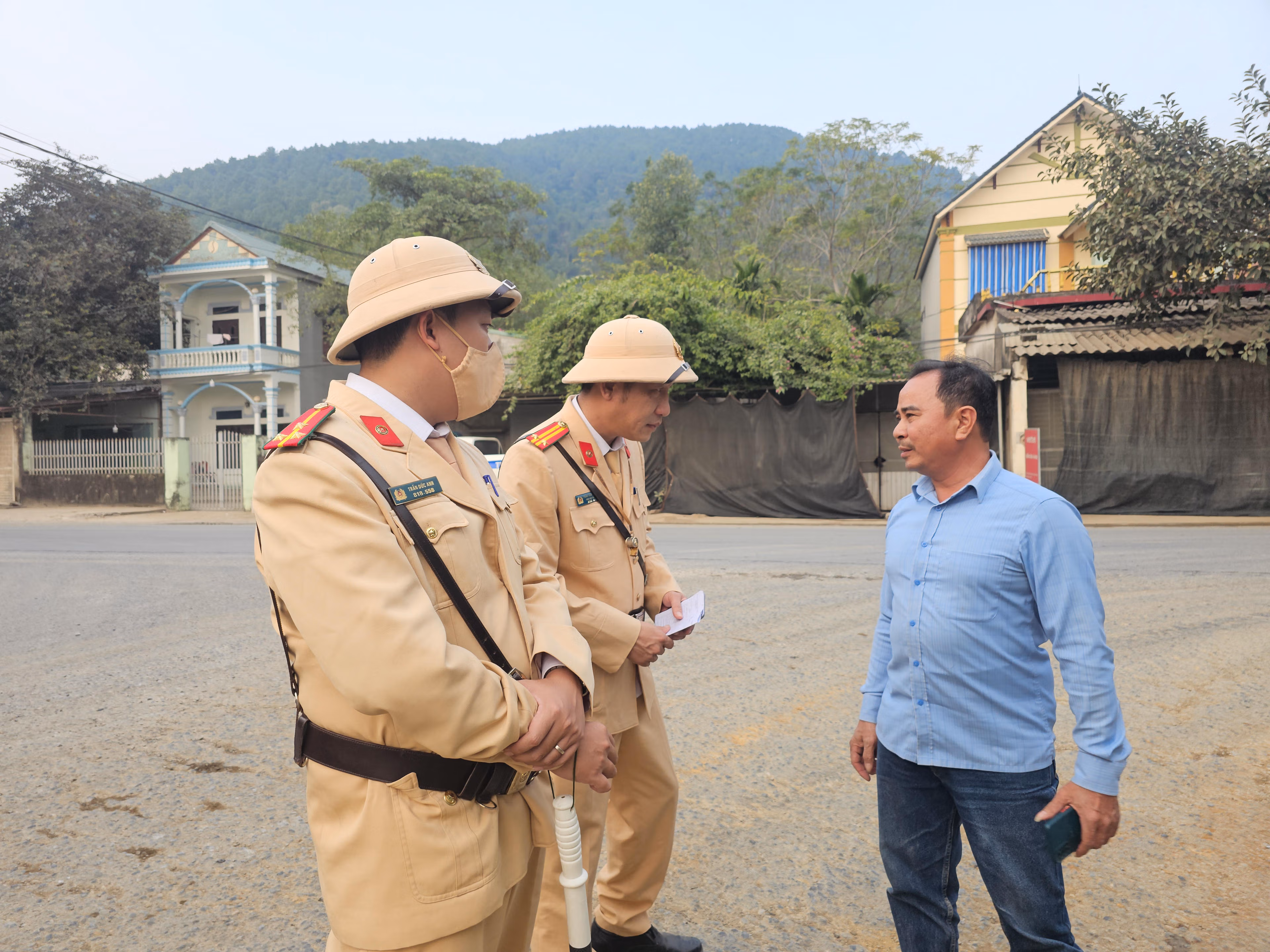 Tại ngã 3 giao cắt giữa đường liên thôn xã Hà Trung với QL217, Đội CSGT số 1 (Phòng CSGT Công an tỉnh Thanh Hóa) đã bố trí 2 xe chuyên dụng cùng 6 cán bộ tuần tra, kiểm soát.