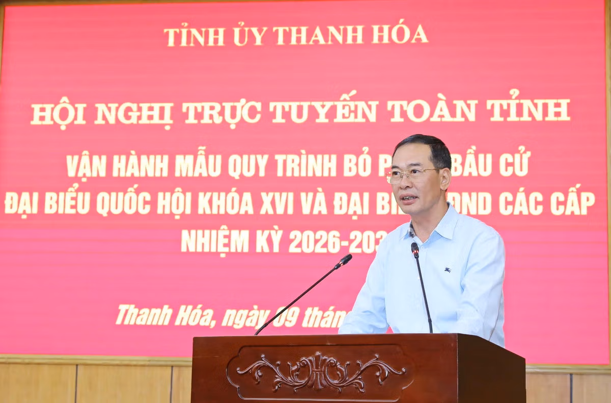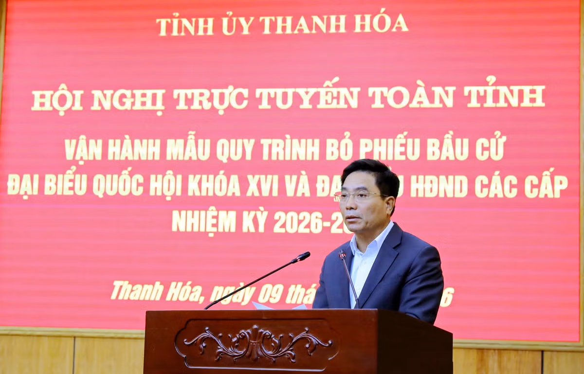Ngày 9/3, Ban Thường vụ Tỉnh ủy Thanh Hóa tổ chức hội nghị trực tuyến toàn tỉnh vận hành mẫu quy trình bỏ phiếu bầu cử đại biểu Quốc hội (ĐBQH) khóa XVI và đại biểu HĐND các cấp nhiệm kỳ 2026-2031. Hội nghị được kết nối trực tuyến từ điểm cầu Tỉnh ủy đến các xã, phường trong toàn tỉnh.