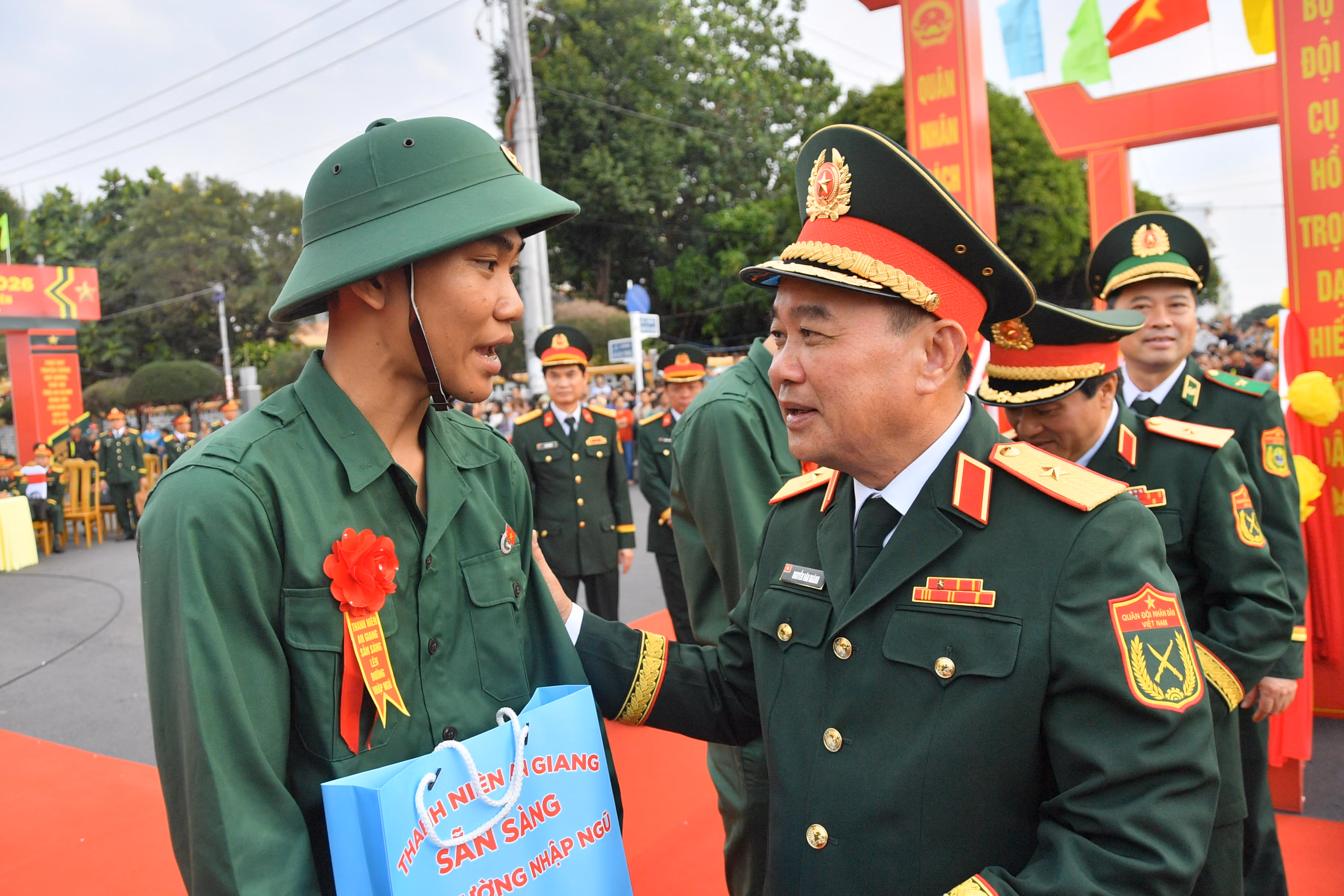 Thượng tướng Nguyễn Văn Gấu - Ủy viên Trung ương Đảng, Ủy viên Quân ủy Trung ương, Thứ trưởng Bộ Quốc phòng dự tại điểm giao nhận quân số 1: Ban chỉ huy Phòng thủ khu vực 2-Long Xuyên, tỉnh An Giang. Cùng dự có Ủy viên Trung ương Đảng, Chủ tịch UBND tỉnh An Giang Hồ Văn Mừng; Trung tướng Nguyễn Xuân Dắt, Tư lệnh Quân khu 9.