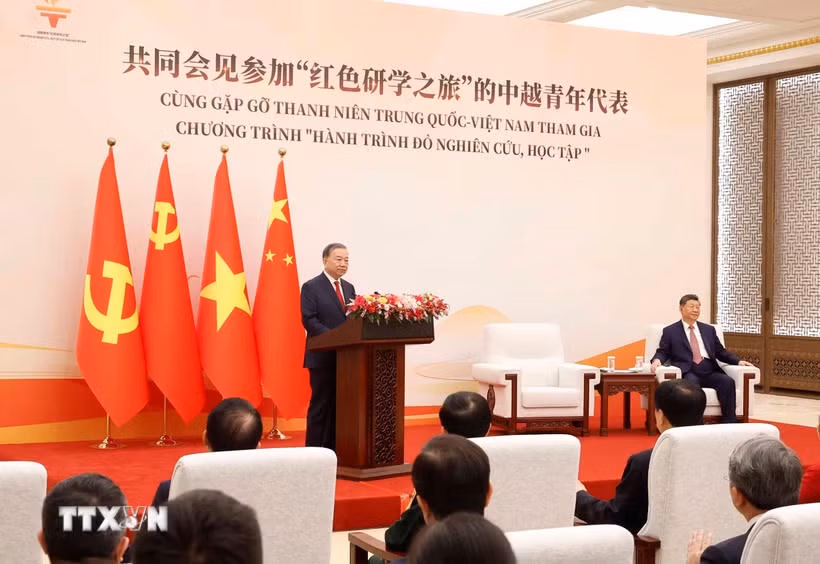 Ngày 15/4, tại thủ đô Bắc Kinh (Trung Quốc), Tổng Bí thư, Chủ tịch nước Tô Lâm và Tổng Bí thư, Chủ tịch Trung Quốc Tập Cận Bình cùng gặp gỡ thanh niên Trung Quốc và Việt Nam tham gia Chương trình “Hành trình đỏ nghiên cứu, học tập,” thể hiện sự coi trọng đặc biệt của lãnh đạo cao nhất hai Đảng, hai nước trong việc vun đắp và bồi dưỡng giáo dục thế hệ trẻ hai nước, tiếp tục kế thừa truyền thống cách mạng của các thế hệ đi trước.