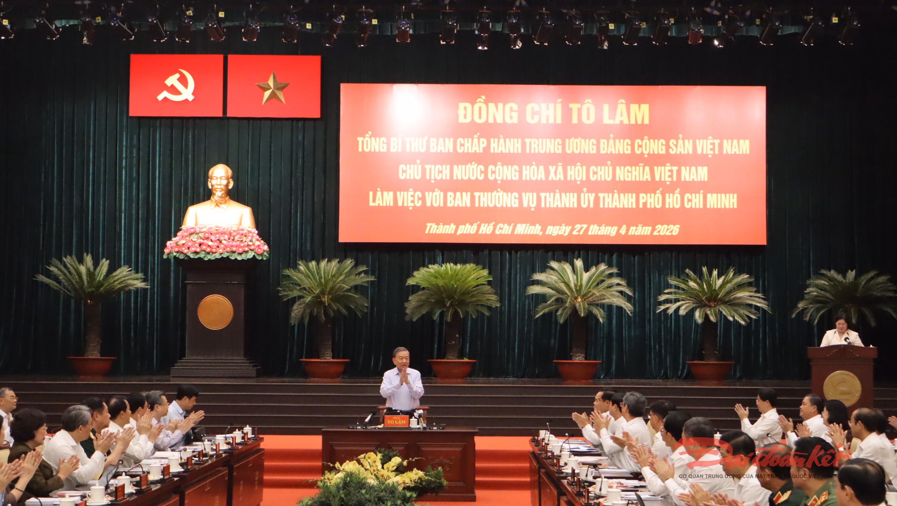 Vào dịp kỷ niệm 51 năm Ngày Giải phóng miền Nam, thống nhất đất nước (30/4/1975-30/4/2026), chiều 27/4, tại TP Hồ Chí Minh, Tổng Bí thư, Chủ tịch nước Tô Lâm cùng Đoàn công tác của Trung ương đã có buổi làm việc với Ban Thường vụ Thành ủy TP Hồ Chí Minh. Tổng Bí thư, Chủ tịch nước Tô Lâm yêu cầu Thành phố Hồ Chí Minh phải cụ thể hóa sâu hơn các nghị quyết chiến lược của Trung ương, không dừng ở chương trình hành động mà phải kiến tạo thành mô hình phát triển.
