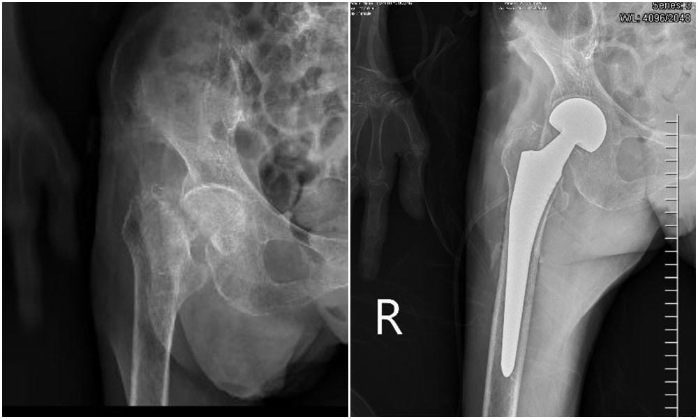 Bệnh nhân là cụ Trần Thị Ch. (107 tuổi) trú tại phường Dương Huy, thành phố Cẩm Phả. Theo gia đình cho biết, cách đây 2 tháng cụ Ch. bị ngã đập mông xuống nền cứng, sau tai nạn hạn chế vận động háng phải. Do thấy cụ tuổi cao sức yếu nên sau khi thăm khám tại y tế cơ sở gia đình quyết định đưa cụ về nhà chăm sóc theo dõi. Tuy nhiên tình trạng ngày càng nặng nề hơn, đùi phải sưng đau, mất vận động, sinh hoạt phụ thuộc vào con cái. Gia đình đưa cụ đến khám tại Bệnh viện Đa khoa tỉnh, qua thăm khám và chụp x-quang, các bác sĩ chẩn đoán cụ Ch. bị gãy cổ xương đùi phải và được chỉ định mổ thay khớp háng nhân tạo.