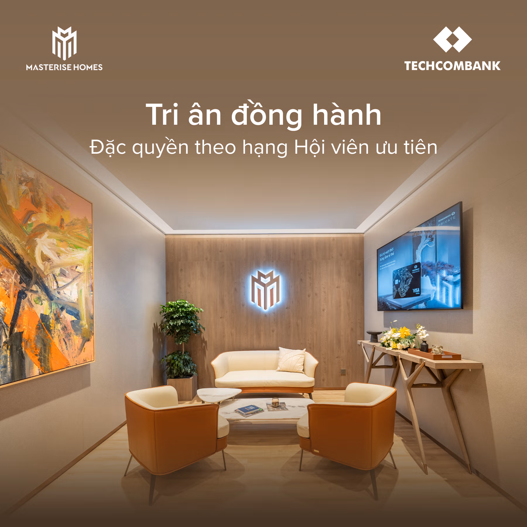 Masterise Homes kiến tạo không gian sống hàng hiệu theo tiêu chuẩn quốc tế, nơi từng chi tiết được chăm chút để nuôi dưỡng cảm xúc sống. Techcombank xây dựng nền tảng tài chính thông minh và hiệu quả, giúp khách hàng luôn chủ động và an tâm trong các kế hoạch dài hạn.