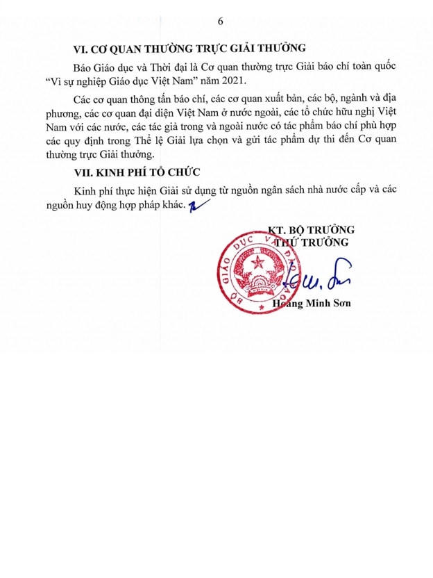Thể lệ Giải báo chí toàn quốc “Vì sự nghiệp Giáo dục Việt Nam” năm 2021