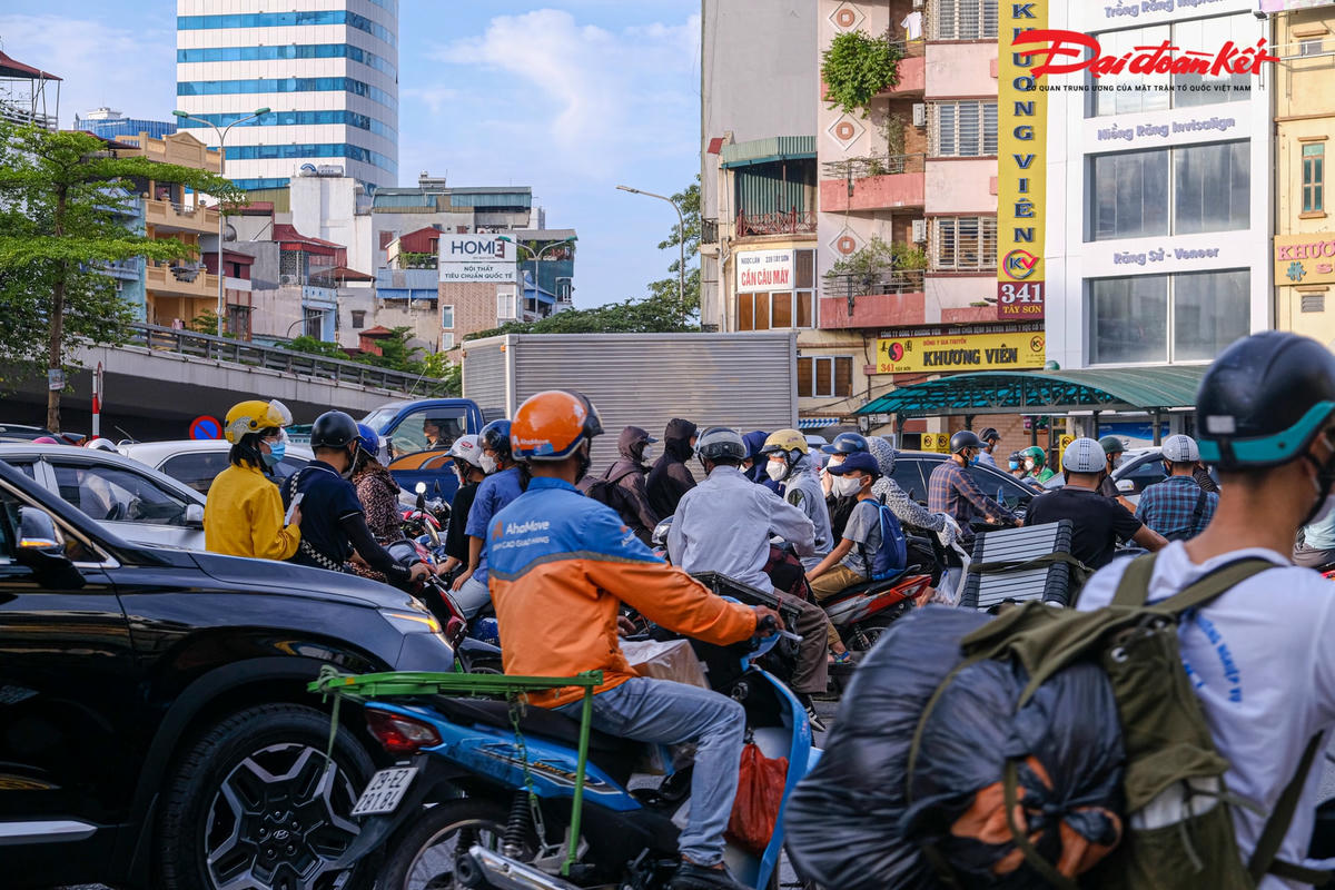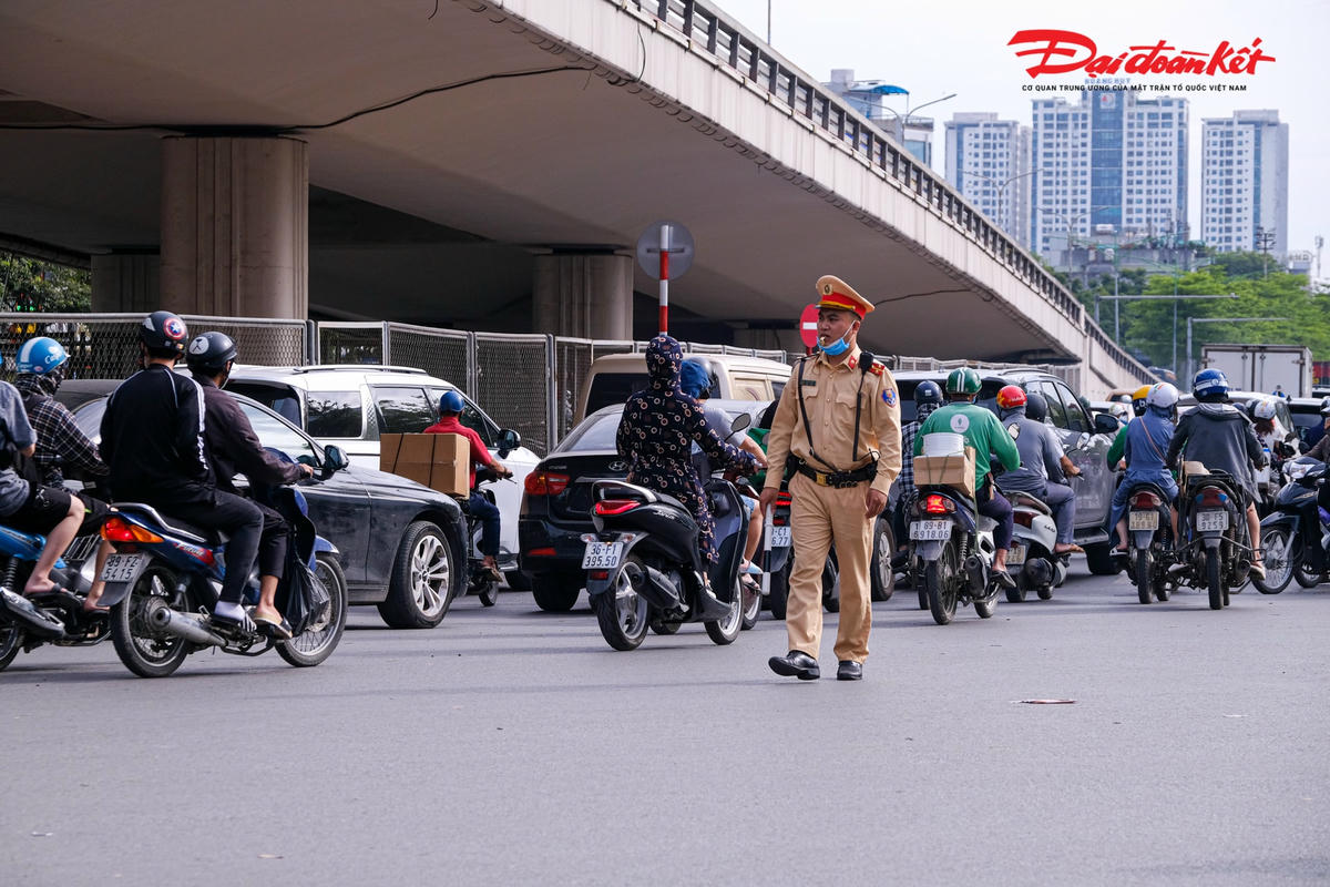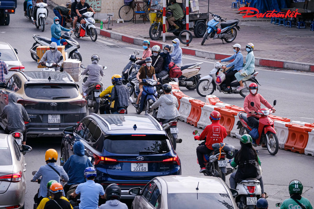 Thí điểm tổ chức giao thông tại nút Ngã Tư Sở, người dân nối đuôi đi ngược chiều