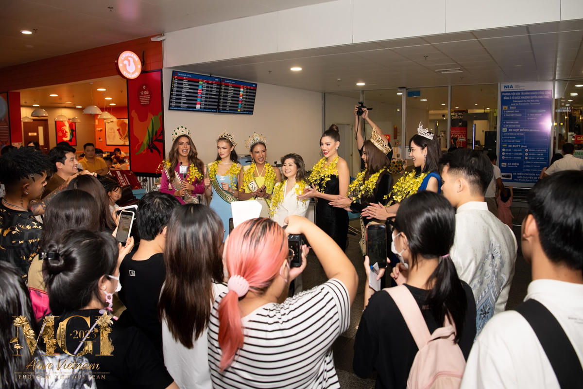 Đến gần cuối ngày, vào khoảng 19h-22h, đông đảo người hâm mộ đến sân bay để chào mừng các thí sinh đến từ các nước, tạo không khí náo nhiệt tại sân bay.