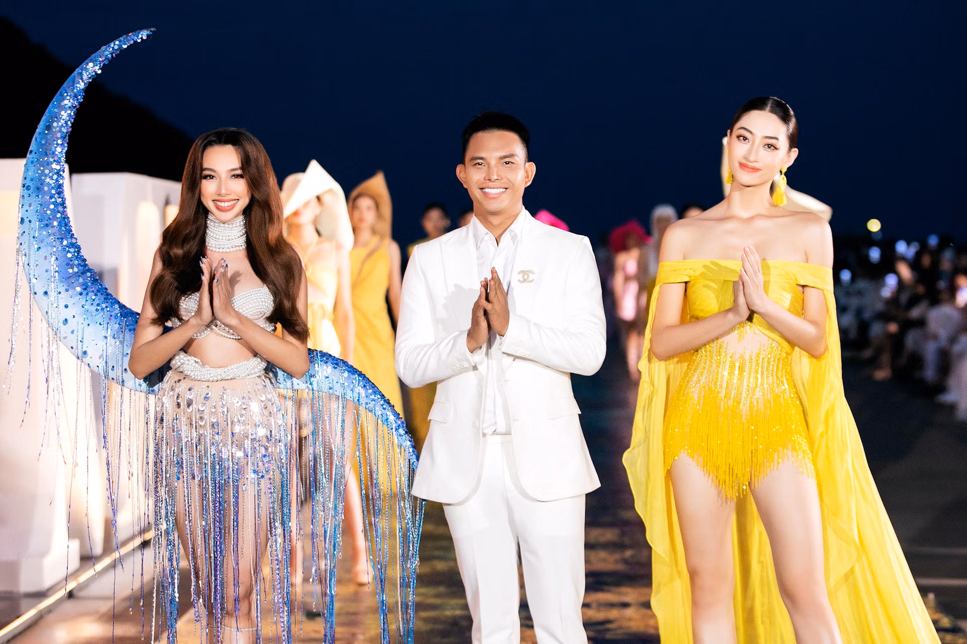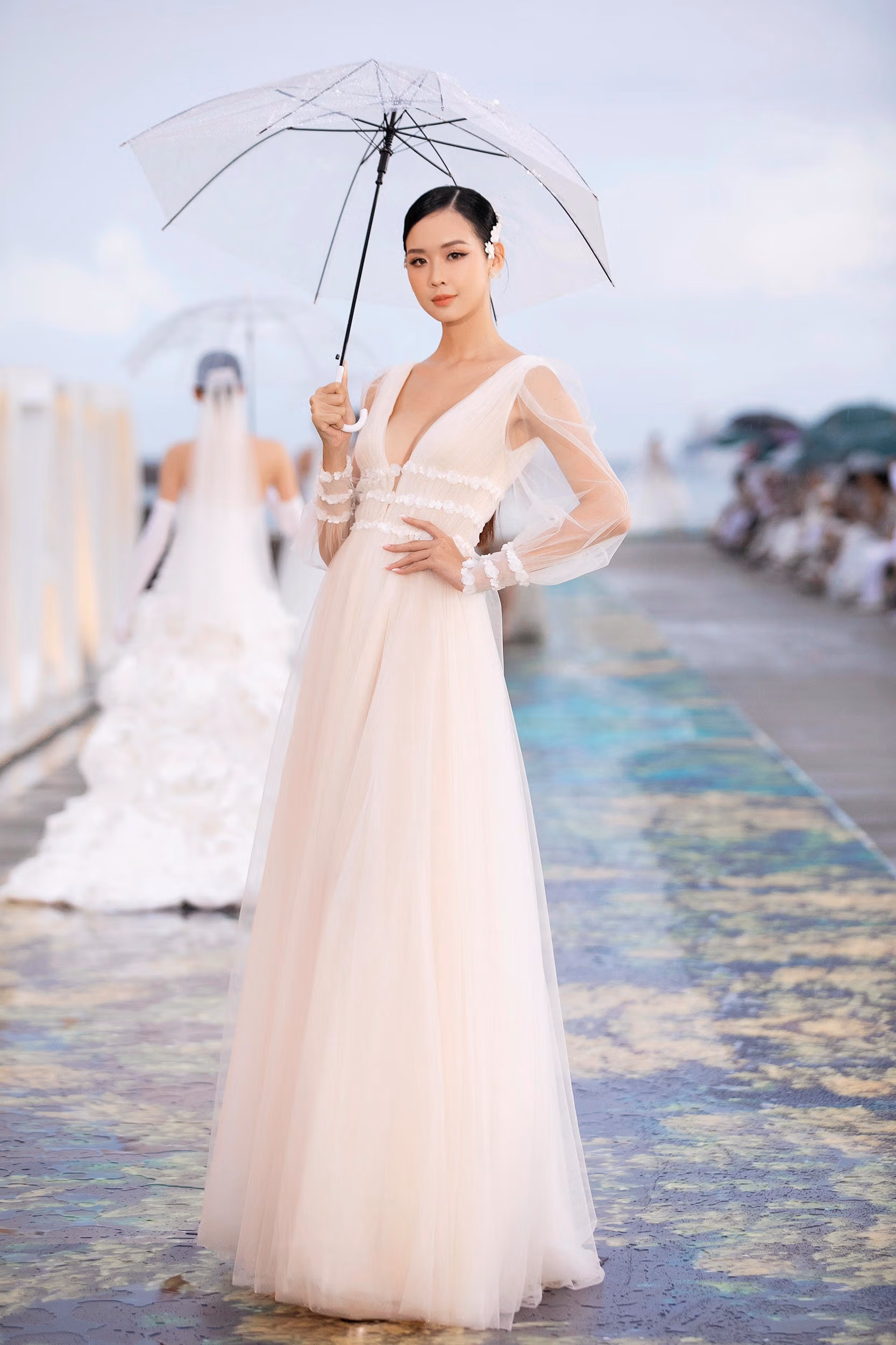 Thí sinh Miss World Việt Nam 2022 diễn thời trang dưới mưa Chủ Nhật 31/07/2022 17:36 (GMT+7) Mặc điều kiện thời tiết mưa lớn, Top 37 thí sinh Miss World Việt Nam 2022 vẫn thể hiện sự chuyên nghiệp và hoàn thành phần catwalk trên sàn runway dài 300 m. Nối tiếp chuỗi sự kiện đậm chất mùa hè miền nhiệt đới trong khuôn khổ vòng Chung kết Miss World Vietnam 2022, show thời trang “Vietnam Beauty Fashion Fest” đã được diễn ra trong điều kiện thời tiết bất lợi.Trong show diễn lần này, Top 37 thí sinh trải bước trên sàn runway 300 m. Góp mặt ở show diễn có Hoa hậu Hòa bình Nguyễn Thúc Thùy Tiên, NTK Đỗ Long, Hoa Hậu Lương Thùy Linh...Trong suốt khoảng thời gian diễn ra BST của NTK Lê Thanh Hòa, thời tiết tại Quy Nhơn trở giông bão và điều kiện di chuyển của các thí sinh trở nên khó khăn hơn.Sau khi quyết định bổ sung đạo cụ, mặc dù các thí sinh phải vừa catwalk vừa cầm dù dưới mưa, các cô gái vẫn thể hiện sự chuyên nghiệp và hoàn thành phần trình diễn của mình.NTK Lê Thanh Hoà đã biến tấu cắt cúp những chi tiết nhỏ nhặt trong từng chiếc đầm tạo nên những thiết kế mang dấu ấn riêng của từng thí sinh. Các cô gái của Miss World Việt Nam còn thể hiện sự tự tin tuyệt đối khi trình diễn tiếp ở BST "Inside Out" của NTK Đỗ Long ngay sau đó.Top 37 trình diễn tự tin trong điều kiện thời tiết bất lợi. Chính sự tự tin và thần thái đã khiến kỳ vọng của khán giả dành cho các thí sinh chung kết Miss World Việt Nam 2022 được nâng lên tầm cao mới.Bằng những kỹ thuật và tay nghề cao nhất, đội ngũ NTK Đỗ Long đã đưa ý tưởng đó vào BST qua việc xử lý chất liệu xuyên thấu, trong suốt và mờ ảo, qua những thiết kế bay bổng, nhẹ nhàng mà đầy cuốn hút. Bên cạnh việc tập luyện, các thí sinh còn không ngừng trau dồi thêm những kỹ năng giao tiếp để tiếp tục thi đấu trong phần Head to Head Challenge - "Người đẹp Bản lĩnh". Vân Vân