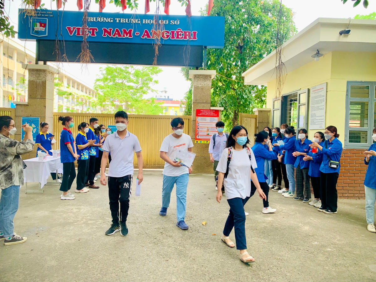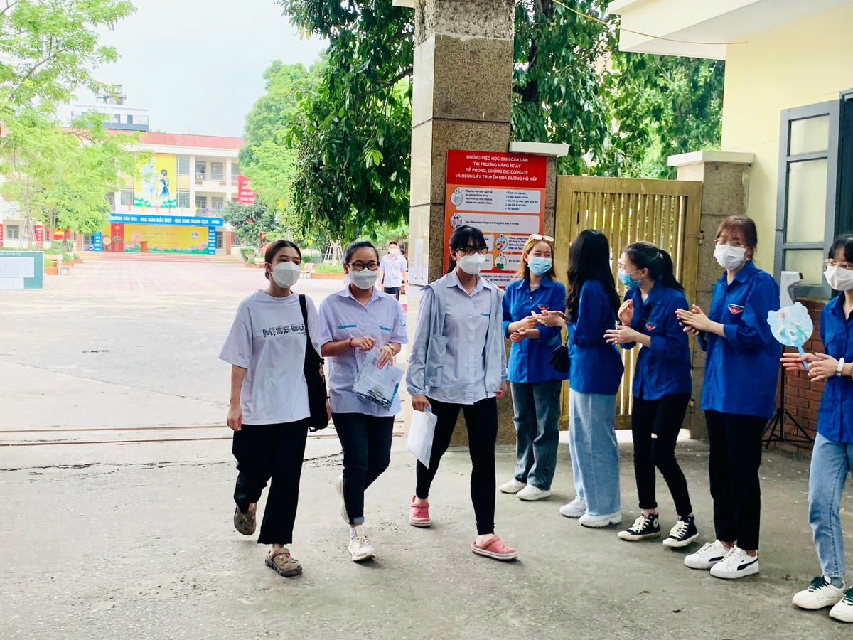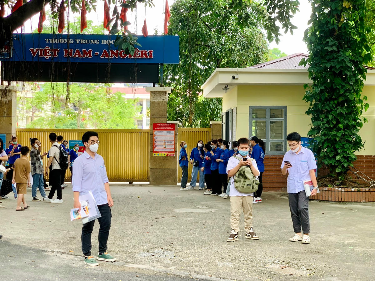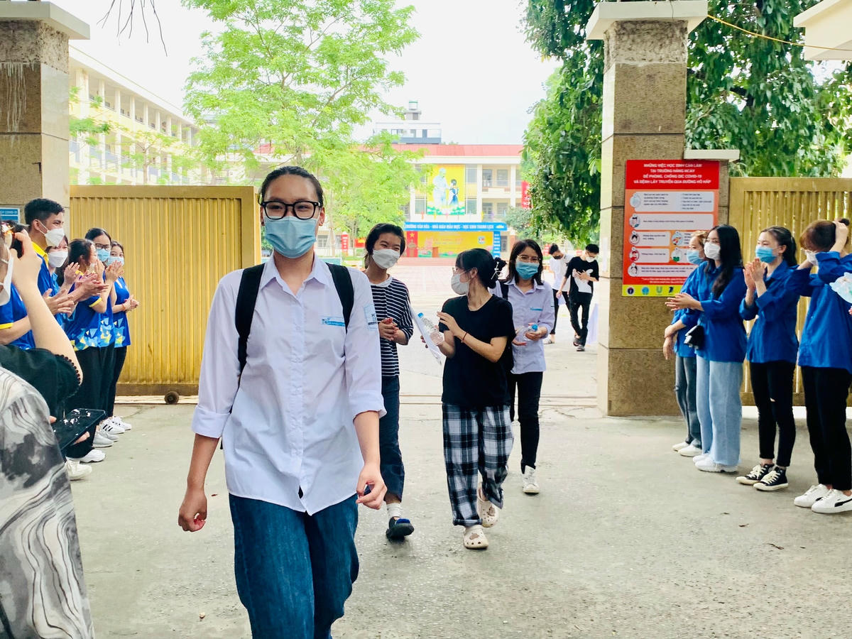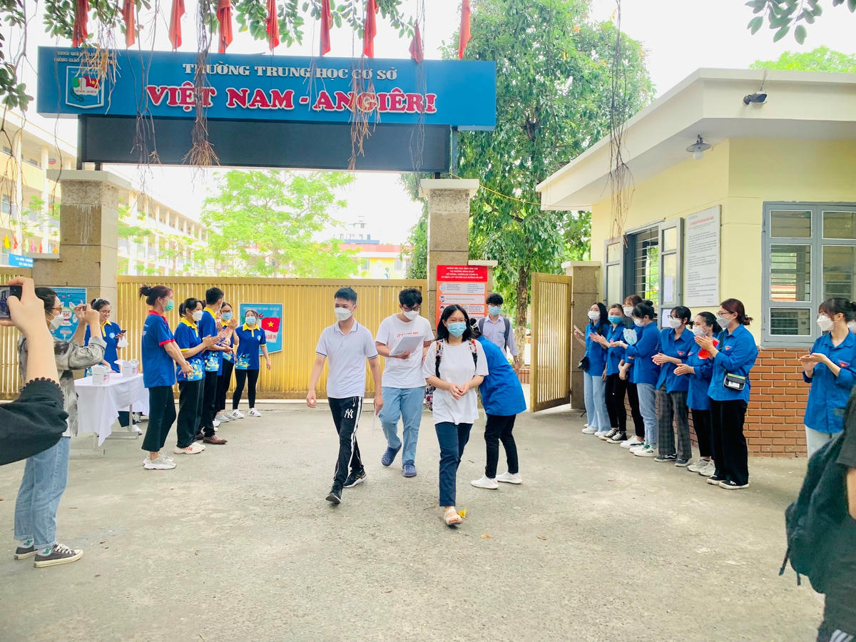 Sáng 7/7, thí sinh cả nước đã hoàn thành bài thi đầu tiên với môn thi Ngữ văn của Kỳ thi tốt nghiệp THPT năm 2022.Theo đánh giá của hầu hết thí sinh, đề thi Ngữ văn bám sát chương trình học, vừa sức với học sinh.Rời khỏi điểm thi Trường THCS Việt Nam – Angieri (Thanh Xuân) đầu tiên, thí sinh Vũ Kỳ Anh, học sinh lớp 12 A1, Trường THPT Chuyên Khoa học Tự nhiên – Đại học Quốc gia Hà Nội phấn khởi cho biết, em làm được hết bài. Với đề thi môn Ngữ văn, Kỳ Anh tự tin đạt trên 6 điểm.Đề thi nằm trong kiến thức học sinh đã được thầy cô dạy và ôn tập trên lớp nên dễ dàng hoàn thành bài thi. “Em cảm thấy đề thi năm nay vừa sức dù em học khối tự nhiên. Tác phẩm nghị luận văn học cũng nằm trong chương trình ôn tập, đặc biệt là sát đề thi học kỳ của trường”, Kỳ Anh nói.Em Nguyễn Thi Khánh An, học sinh lớp 12D1, Trường THPT Đào Duy Từ cũng cho biết: “Em cảm thấy đề thi năm nay ổn định và dễ thở. Em đã ôn tập và luyện đề rất kỹ lưỡng. Em không có gì lo lắng”.Sau khi con hoàn thành bài thi khá tốt, phụ huynh Trần Thị Luân (44 tuổi, quận Thanh Xuân) chia sẻ: “Cảm xúc lúc này của tôi khá hồi hộp và mong con đạt được điểm tốt. Cháu nhà tôi học lực khá giỏi nên cũng không có gì lo lắng, cháu rất tự tin và ôn tập kỹ lưỡng nên gia đình luôn tin tưởng vào con”.Phụ huynh Lê Thị Mai (40 tuổi, Hà Đông) cho hay: “Môn Văn là môn cháu yếu nhất nên chị cũng rất lo. Tuy nhiên, cháu làm được bài nên tôi cũng thở phào nhẹ nhõm”.Thí sinh phấn khởi sau khi hoàn thành bài thi đầu tiên.Theo kế hoạch, chiều nay, 7/7, thí sinh sẽ làm bài thi môn Toán, thời gian trong 90 phút, bắt đầu từ 14h30.