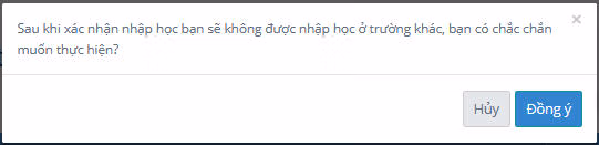 Bước 5: Nhấn Đồng ý để hoàn thành việc xác nhận nhập học.
