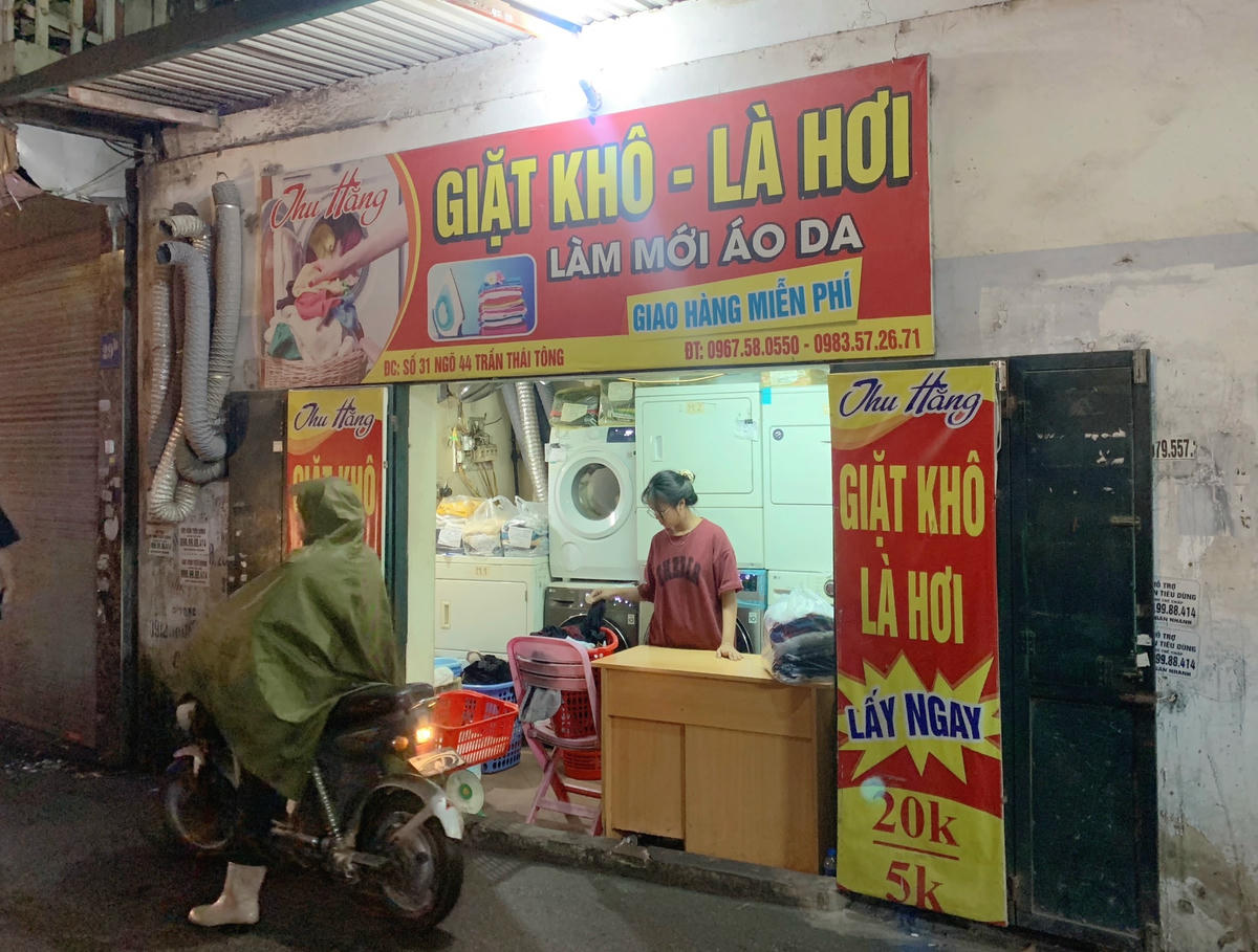Chị Trang cho biết, để quần áo không bị mùi và ẩm, cả gia đình chị đã lựa chọn cách mang ra cửa hàng giặt là đầu ngõ để họ có thể sấy khô luôn quần áo cho mình. Tuy nhiên, theo chị Trang, những cửa tiệm giặt là đợt này đông khách, họ không thể trả hàng ngay trong ngày mà thường phải hẹn sang 1, 2 hôm sau, đôi khi cũng bất tiện khi chị cần một bộ đồ nào đấy để đi làm, đi sự kiện.