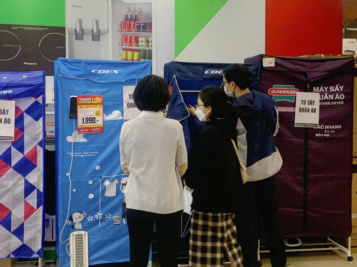 Không chỉ các cửa tiệm giặt là, những ngày qua, tại các siêu thị bán đồ tiêu dùng, điện tử cũng ghi nhận nhu cầu của người dân tìm mua, đặt hàng các loại máy sấy quần áo, hút ẩm hay lọc không khí tăng cao.