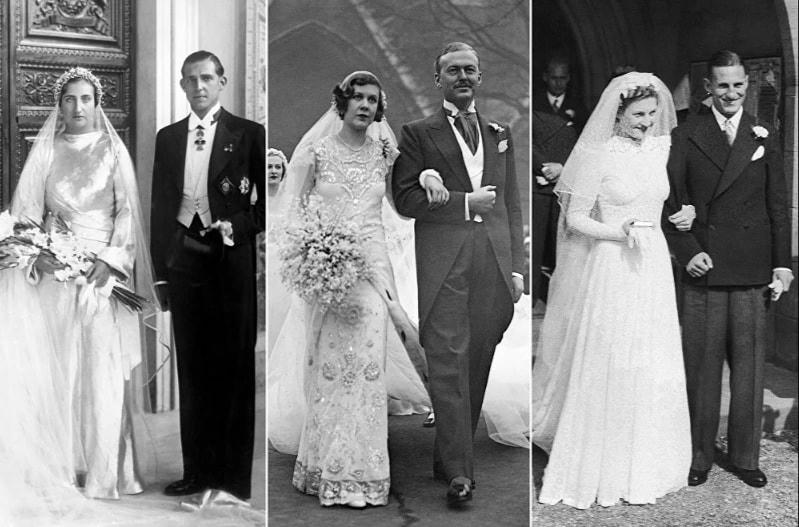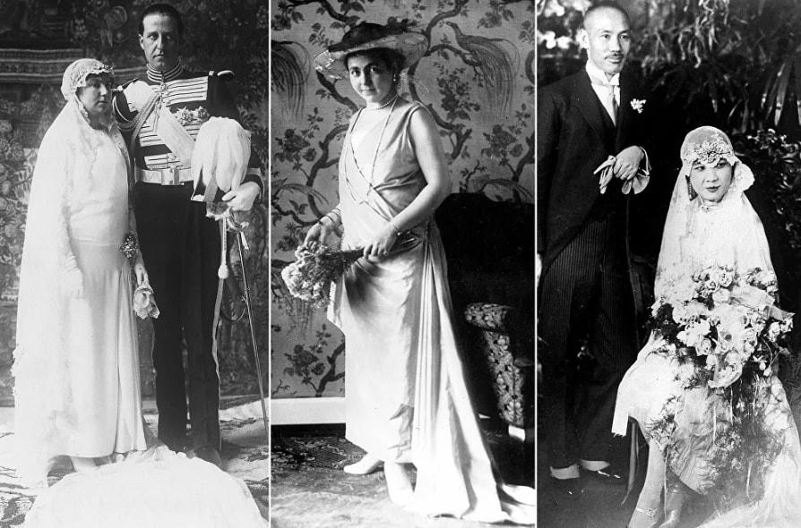 Từ trái qua: Công chúa Isabel Alfonsa của Bourbon-Two Sicilies trong đám cưới của cô với Bá tước Ba Lan Jan Kanty Zamoysk vào ngày 9/3/1929; Công chúa H Treaty Reuss của Greiz trong đám cưới của cô với Hoàng đế cuối cùng của Đức và Vua của Phổ Wilhelm II, vào ngày 1/11/1922; Nữ chính trị gia Tống Mỹ Linh cùng chồng, ông Tưởng Giới Thạch, ngày 1/12/1927.