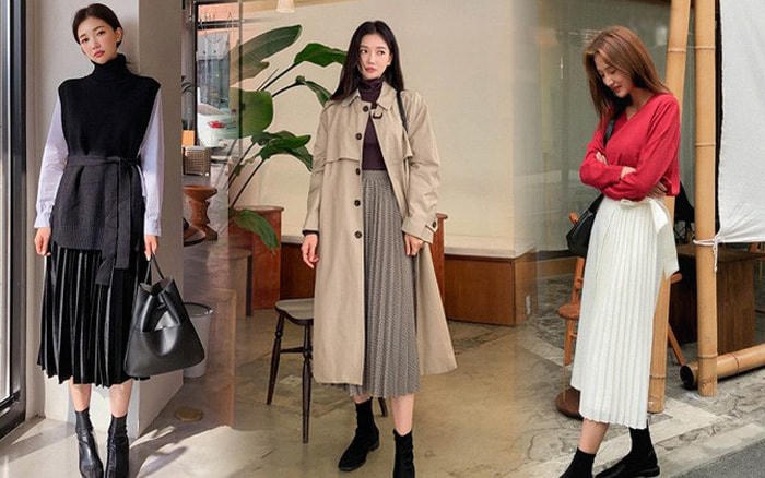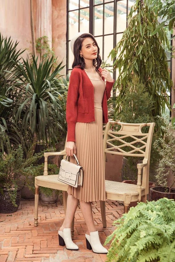 Thời trang kết hợp chân váy xếp ly với nhiều phong cách nữ tính