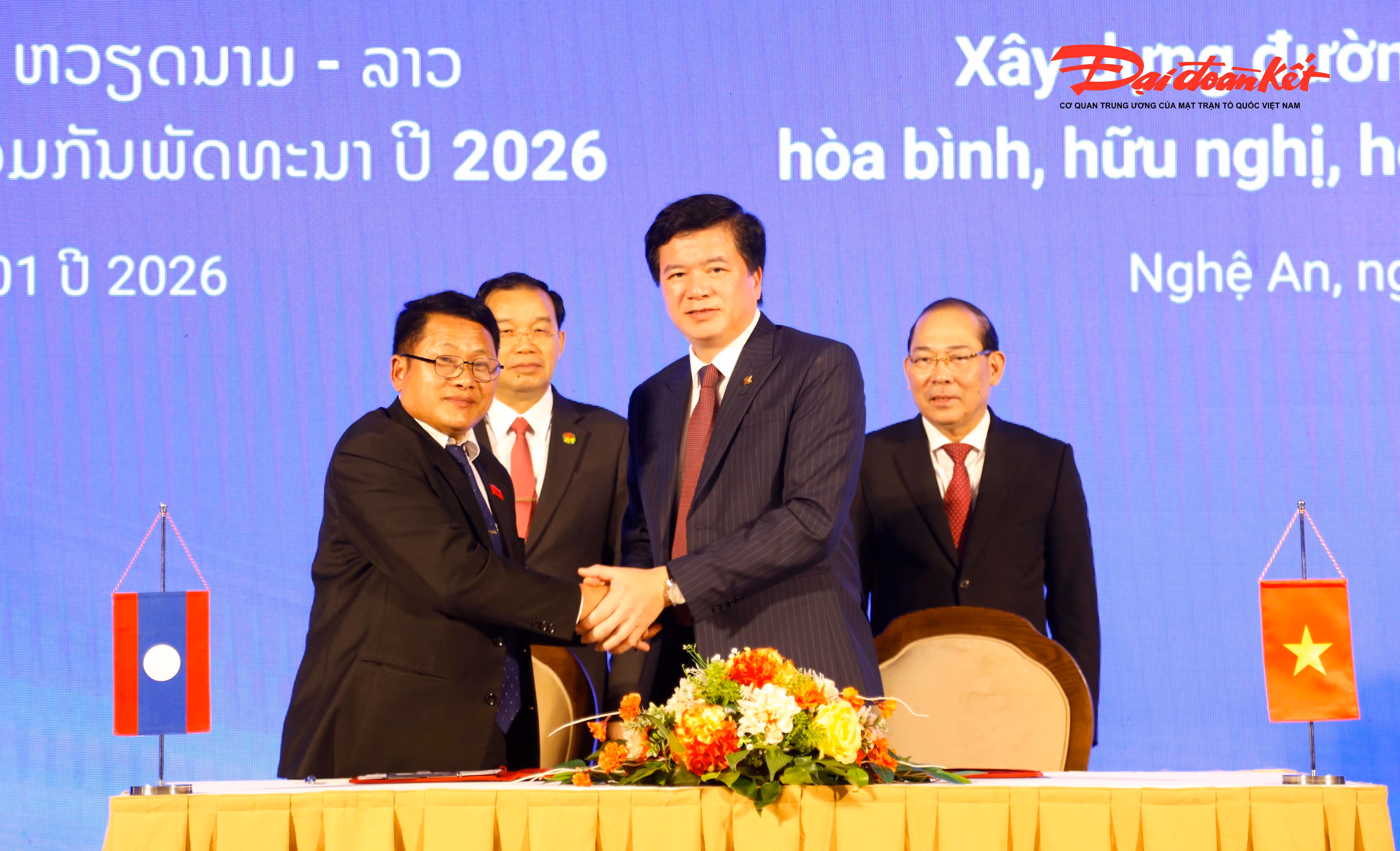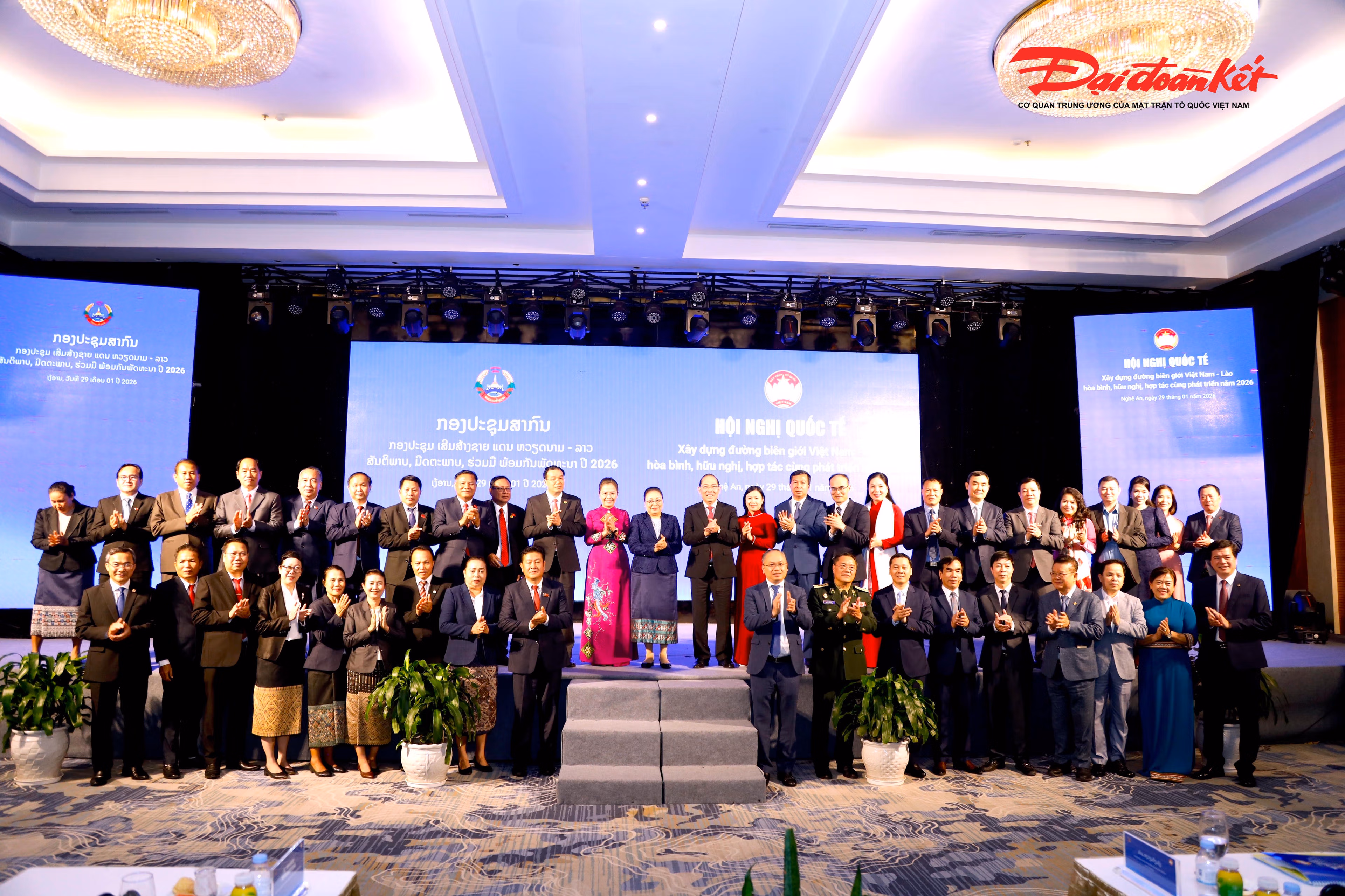 Hôm nay, ngày 29 tháng 1 năm 2026 tại tỉnh Nghệ An, nước Cộng hòa Xã hội Chủ nghĩa Việt Nam, Ủy ban Trung ương Mặt trận Tổ quốc Việt Nam phối hợp với Ủy ban Trung ương Mặt trận Lào xây dựng đất nước, sau đây gọi chung là “hai Bên”, tổ chức Hội nghị quốc tế về xây dựng đường biên giới Việt Nam - Lào hòa bình, hữu nghị, hợp tác cùng phát triển năm 2026.