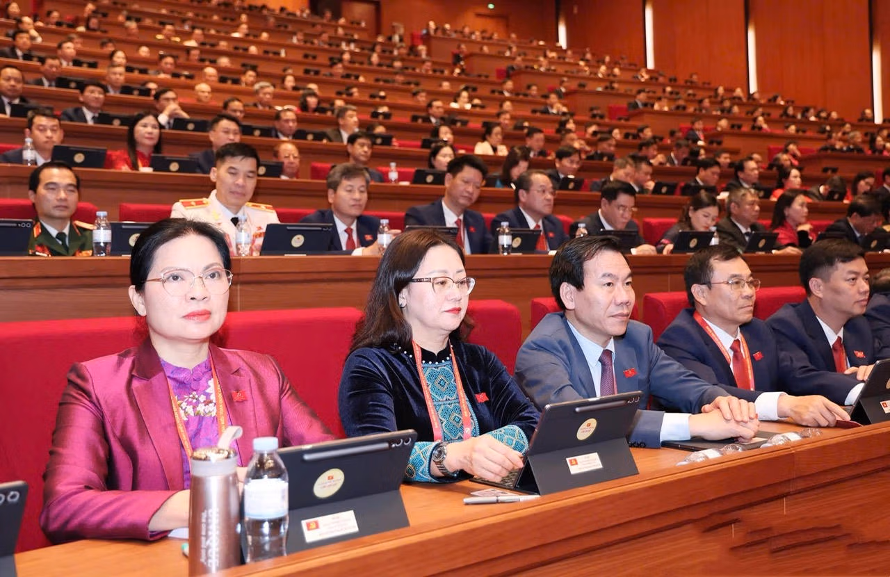 Đại hội đã biểu quyết tán thành, nhất trí cao thông qua Báo cáo thẩm tra tư cách đại biểu Đại hội XIV của Đảng do Ban Thẩm tra tư cách đại biểu trình. Theo đó, tất cả 1.586 đại biểu được triệu tập dự Đại hội đều đủ tư cách đại biểu Đại hội.
