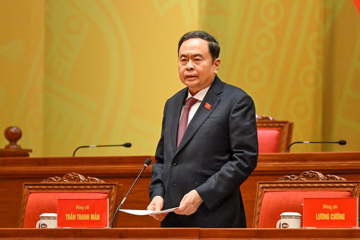 Đồng chí Trần Thanh Mẫn, Ủy viên Bộ Chính trị, Chủ tịch Quốc hội nước Cộng hòa xã hội chủ nghĩa Việt Nam thay mặt các đồng chí lãnh đạo chủ chốt của Đảng, Nhà nước điều hành phiên họp trù bị.