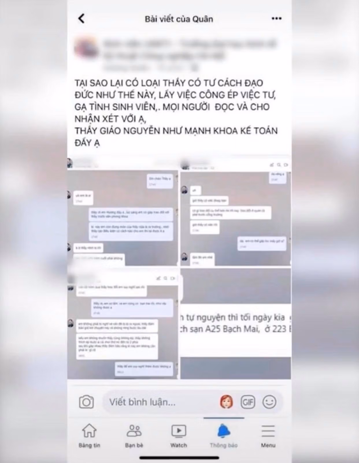 Đoạn tin nhắn được cho là thầy giáo N.N.M. của Khoa Kế toán gây xôn xao mạng xã hội: