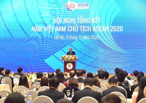 Về kết quả Năm Chủ tịch ASEAN 2020, Thủ tướng nêu rõ, dưới sự dẫn dắt của Việt Nam, ASEAN đã thực sự linh hoạt và chủ động, thích ứng với các biến động của thời cuộc. Cấp cao ASEAN lần đầu tiên đã họp 3 lần trong năm thay vì 2 lần theo thông lệ, nhiều hội nghị cấp cao, hội nghị bộ trưởng lần đầu được tổ chức trực tuyến và đặc biệt, nhiều văn kiện quan trọng của ASEAN cũng được ký kết trực tuyến lần đầu tiên.