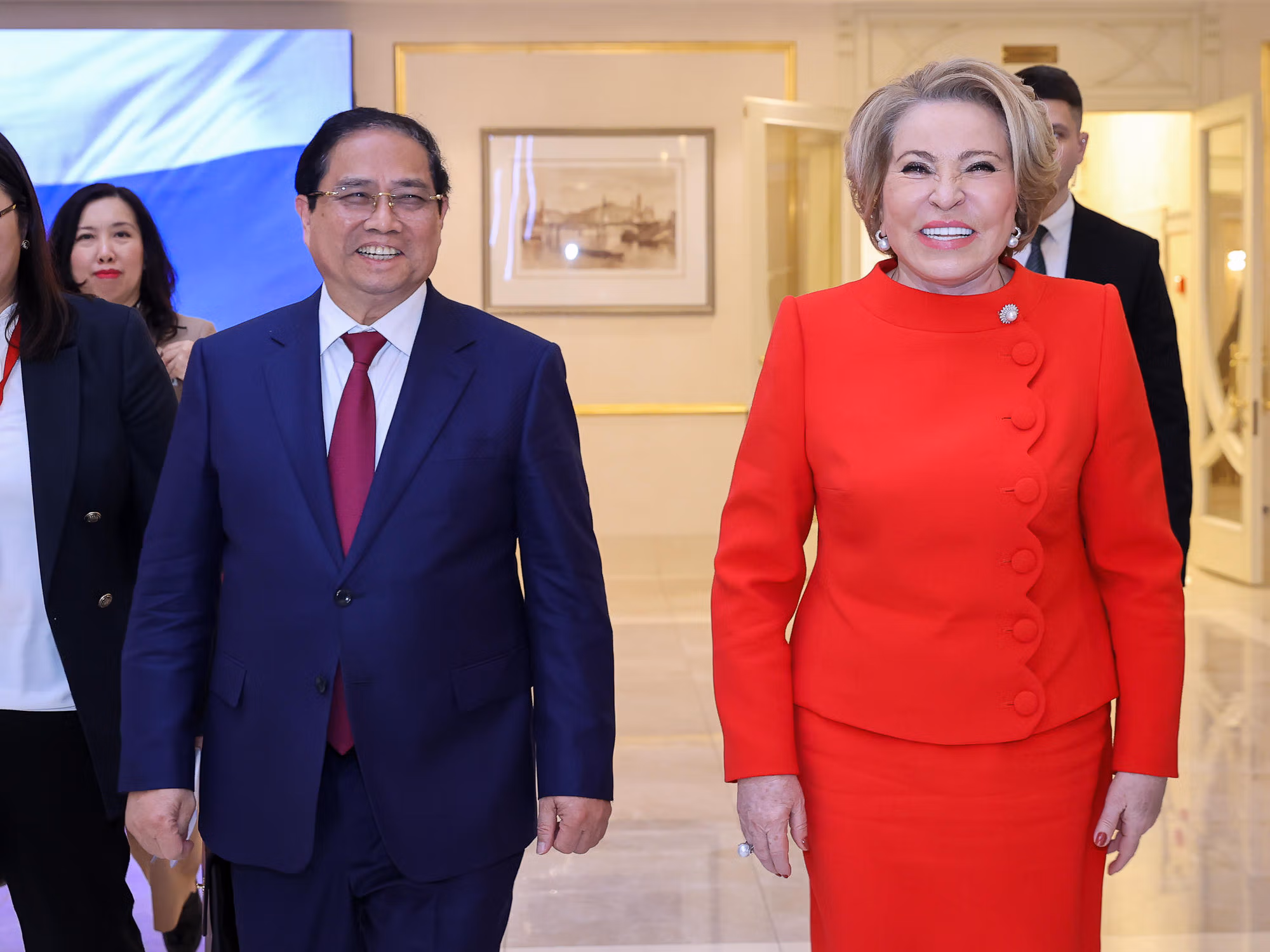 Ngày 23/3, tại trụ sở Hội đồng Liên bang (Thượng viện) Nga ở thủ đô Moskva, trong khuôn khổ chuyến thăm chính thức Liên bang Nga, Thủ tướng Chính phủ Phạm Minh Chính đã có cuộc hội kiến với Chủ tịch Hội đồng Liên bang Nga Valentina Matviyenko.