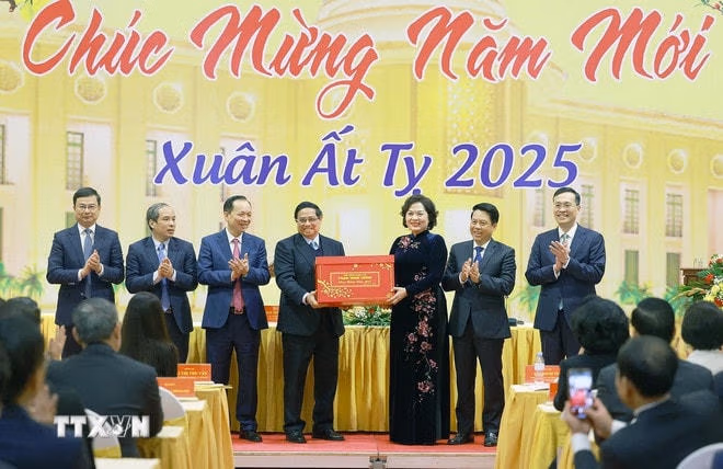 Thủ tướng Phạm Minh Chính chúc mừng, mong muốn và tin tưởng kết quả công tác năm 2025 của ngành Ngân hàng sẽ cao hơn năm 2024, cùng cả nước bước vào kỷ nguyên mới - kỷ nguyên vươn mình phát triển giàu mạnh, văn minh, thịnh vượng và người dân ngày càng hạnh phúc, ấm no.