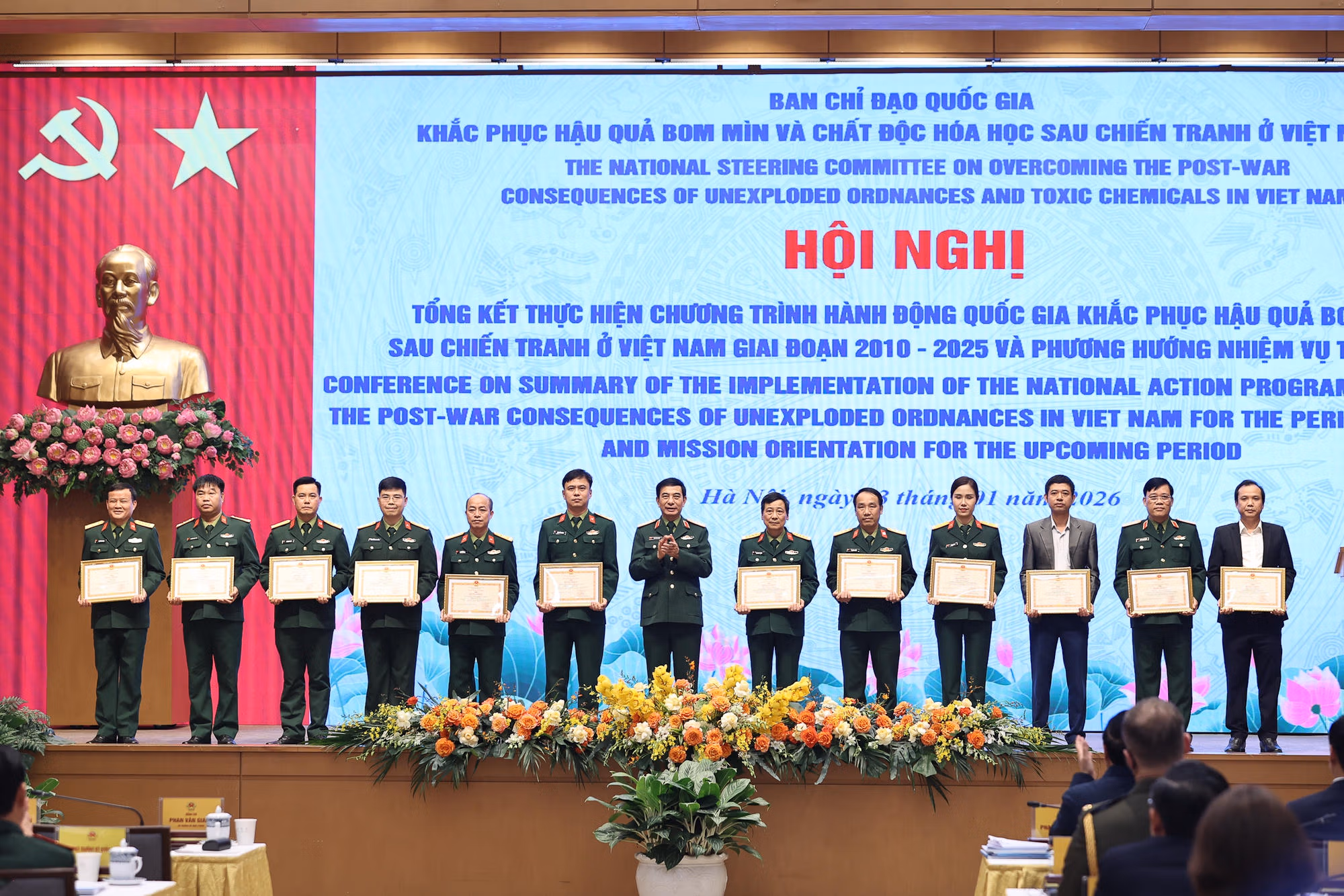 Về một số nhiệm vụ cụ thể, Thủ tướng Chính phủ giao Bộ Quốc phòng chủ trì, phối hợp các bộ, ngành, địa phương liên quan khẩn trương hoàn thiện, đề xuất Chương trình giai đoạn 2026 - 2045, trình Thủ tướng Chính phủ trong tháng 2/2026; khẩn trương thực hiện Đề án Nâng cao năng lực rà phá bom mìn vật nổ đến năm 2030 và những năm tiếp theo, tiếp tục tăng cường nghiên cứu, ứng dụng khoa học công nghệ vào công tác khắc phục hậu quả bom mìn; triển khai vận động, tổ chức tiếp nhận các nguồn tài trợ, bảo đảm mục tiêu, tiến độ thực hiện Chương trình.