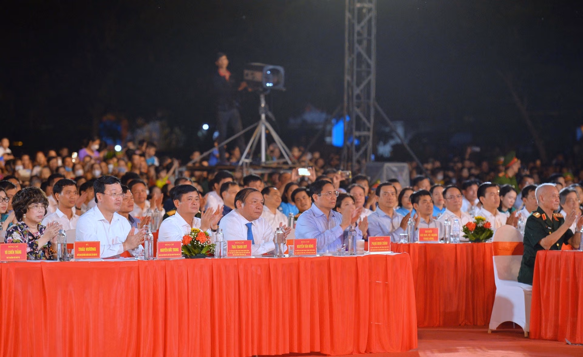 Tối cùng ngày, Thủ tướng Chính phủ cùng đoàn công tác đã dự Chương trình nghệ thuật “Bản hùng ca bất diệt” kỷ niệm 75 năm ngày Thương binh liệt sĩ.