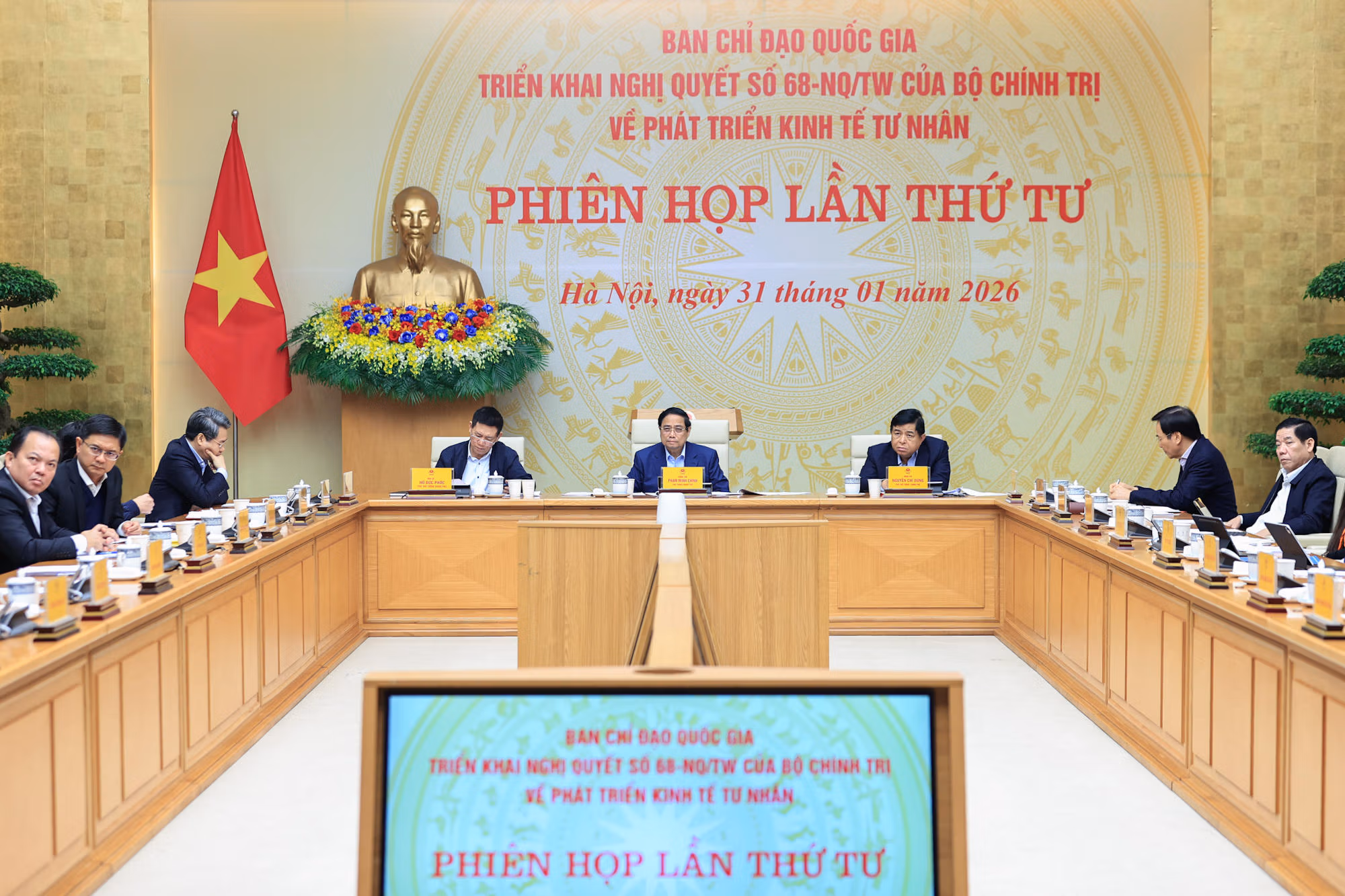 Ngày 31/1, tại trụ sở Chính phủ, Thủ tướng Phạm Minh Chính, Trưởng Ban Chỉ đạo quốc gia triển khai Nghị quyết số 68-NQ/TW của Bộ Chính trị về phát triển kinh tế tư nhân, chủ trì Phiên họp lần thứ tư của Ban Chỉ đạo.