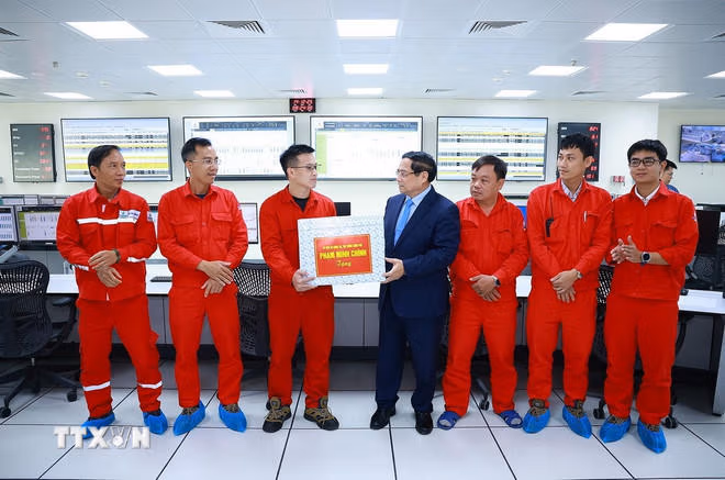 Cam kết Chính phủ sẽ đồng hành, lắng nghe, tháo gỡ khó khăn, vướng mắc và tạo mọi điều kiện thuận lợi để các chủ thể liên quan phát huy tối đa năng lực, hoàn thành xuất sắc nhiệm vụ và sứ mệnh của mình, với thể chế thông thoáng, hạ tầng thông suốt, quản trị thông minh, Thủ tướng Phạm Minh Chính chúc mừng Công trình chiến lược Nhà máy Điện khí LNG Nhơn Trạch 3 và Nhơn Trạch 4 đã được đưa vào vận hành hiệu quả; Tập đoàn Công nghiệp- Năng lượng quốc gia Việt Nam đã lớn mạnh, trưởng thành vượt bậc những năm vừa qua. Cảm ơn những "chiến binh" dầu khí qua các thời kỳ, Thủ tướng Chính phủ tin tưởng, ngành dầu khí Việt Nam sẽ tiếp tục phát triển sánh vai với ngành dầu khí các nước trên thế giới.