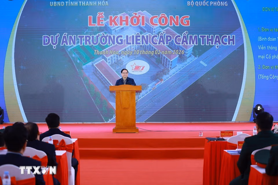 Sáng 10/2, Thủ tướng Phạm Minh Chính dự Lễ khởi công dự án Trường tiểu học Cẩm Thạch; thăm, tặng quà cho gia đình chính sách, hộ nghèo, công nhân lao động có hoàn cảnh khó khăn của tỉnh Thanh Hóa.