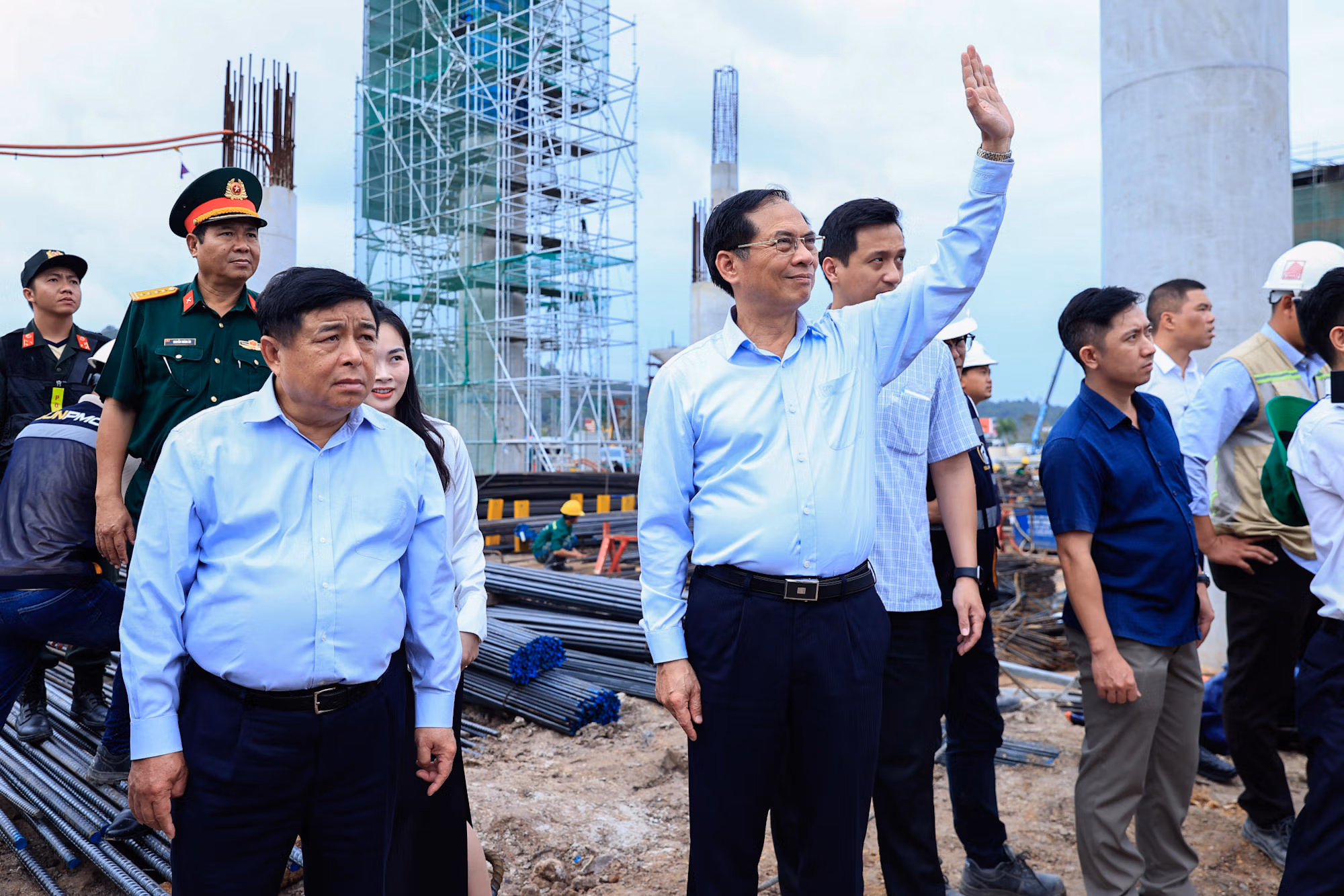 Thủ tướng đề nghị tiếp tục phát huy tinh thần "chỉ bàn làm, không bàn lùi"; "vừa chạy vừa xếp hàng", "vượt nắng, thắng mưa, không thua bão gió", "làm ngày, làm đêm, làm thêm ngày nghỉ", "làm xuyên lễ tết", "ăn tranh thủ, ngủ khẩn trương", để đẩy nhanh tiến độ thi công, đưa sân bay vào khai thác sớm càng tốt; trong quá trình làm nếu có khó khăn, vướng mắc thì báo cáo ngay.