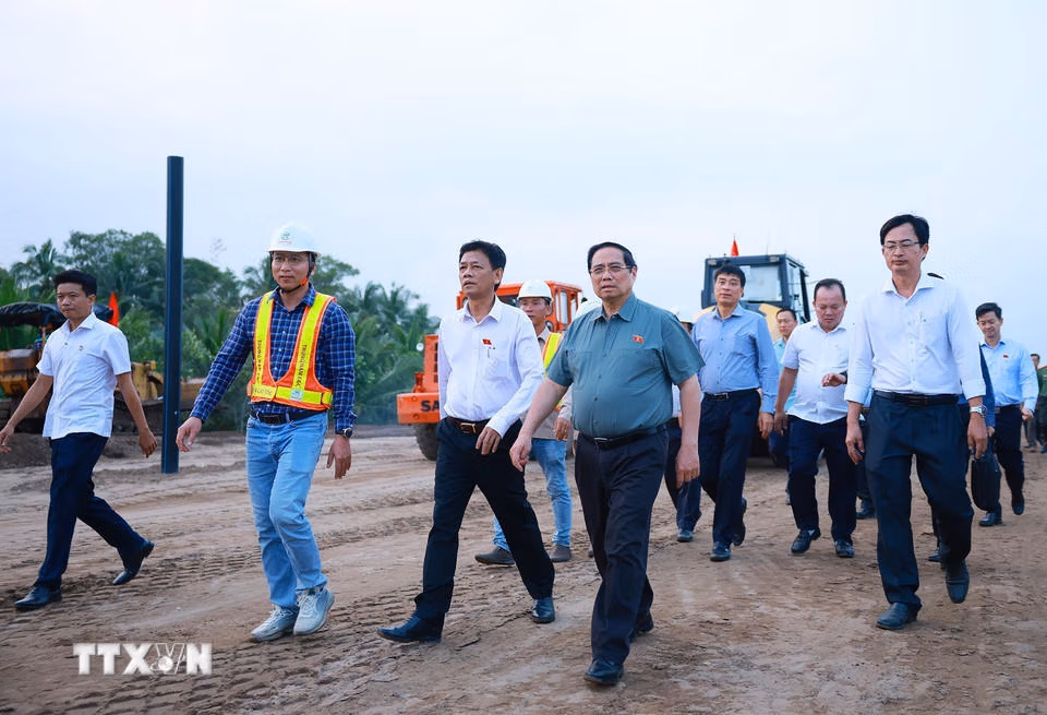 Chiều 28/12, Thủ tướng Phạm Minh Chính kiểm tra tiến độ thi công dự án đầu tư xây dựng tuyến đường bộ cao tốc Châu Đốc-Cần Thơ-Sóc Trăng đoạn qua xã Long Hưng, thành phố Cần Thơ.