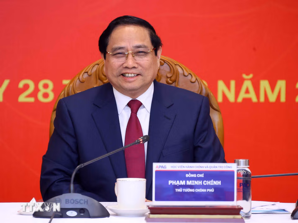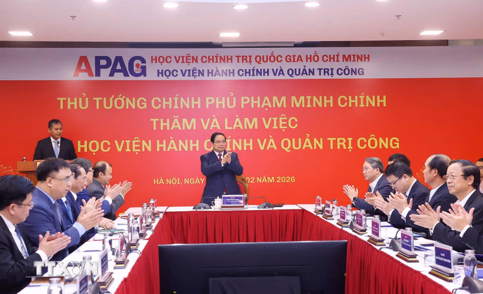 Thủ tướng làm việc với Học viện Hành chính và Quản trị công Thứ Bảy 28/02/2026 11:27 (GMT+7) Sáng 28/2, tại Hà Nội, Thủ tướng Chính phủ Phạm Minh Chính thăm và làm việc với Học viện Hành chính và Quản trị công thuộc Học viện Chính trị quốc gia Hồ Chí Minh. Sáng 28/2/2026, tại Hà Nội, Thủ tướng Chính phủ Phạm Minh Chính thăm và làm việc với Học viện Hành chính và Quản trị công thuộc Học viện Chính trị quốc gia Hồ Chí Minh. (Ảnh: Văn Điệp/TTXVN)Thủ tướng Phạm Minh Chính thăm và làm việc với Học viện Hành chính và Quản trị công. (Ảnh: Văn Điệp/TTXVN)Thủ tướng Phạm Minh Chính và các đại biểu tham quan khu trưng bày sách và giới thiệu về các hoạt động của Học viện. (Ảnh: Văn Điệp/TTXVN)Thủ tướng Phạm Minh Chính và các đại biểu tham quan khu trưng bày sách và giới thiệu về các hoạt động của Học viện. (Ảnh: Văn Điệp/TTXVN)Thủ tướng Phạm Minh Chính và các đại biểu tham quan khu trưng bày sách và giới thiệu về các hoạt động của Học viện. (Ảnh: Văn Điệp/TTXVN)Thủ tướng Phạm Minh Chính và các đại biểu tham quan khu trưng bày sách và giới thiệu về các hoạt động của Học viện. (Ảnh: Văn Điệp/TTXVN)Phó Giáo sư, Tiến sỹ Nguyễn Bá Chiến, Giám đốc Học viện Hành chính và Quản trị công báo cáo về tổ chức, hoạt động và công tác đào tạo, bồi dưỡng của Học viện. (Ảnh: Văn Điệp/TTXVN)Thủ tướng Phạm Minh Chính phát biểu chỉ đạo. (Ảnh: Văn Điệp/TTXVN)Thủ tướng Phạm Minh Chính tại buổi làm việc với Học viện Hành chính và Quản trị công. (Ảnh: Văn Điệp/TTXVN) TheoVietnam+ (VietnamPlus)