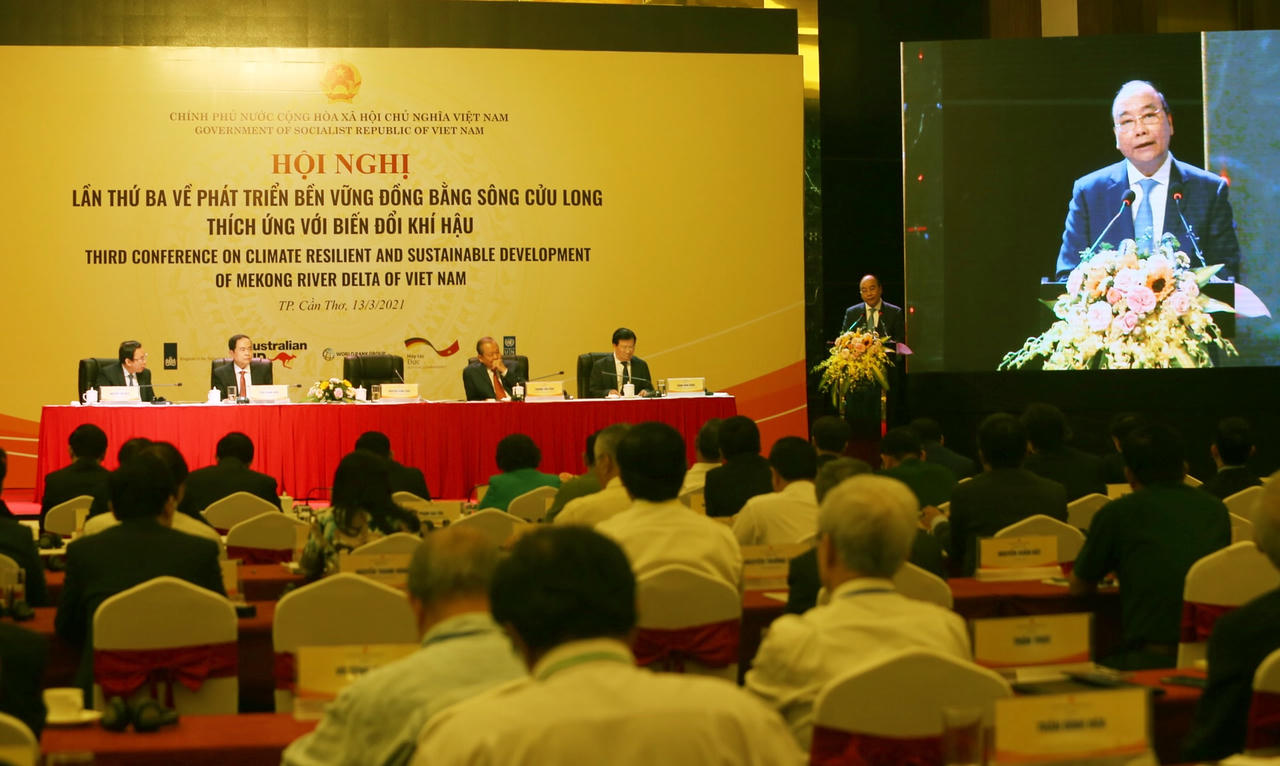 Sau khi lắng nghe 13 ý kiến của các đại biểu, nhất là các ý kiến, kiến nghị của các địa phương vùng ĐBSCL, kết luận Hội nghị lần thứ ba về phát triển bền vững vùng ĐBSCL thích ứng biến đổi khí hậu tại Cần Thơ, Thủ tướng Nguyễn Xuân Phúc đánh giá cao các ý kiến, báo cáo, tham luận hết sức sâu sắc, tâm huyết, trách nhiệm, đầy trăn trở.