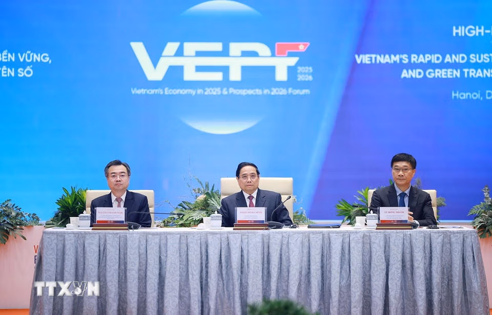 Chiều 16/12/2025, tại Hà Nội, Thủ tướng Phạm Minh Chính dự Diễn đàn Kinh tế Việt Nam 2025, triển vọng 2026 với chủ đề “Kinh tế Việt Nam phát triển nhanh, bền vững, chuyển đổi xanh trong kỷ nguyên số”.